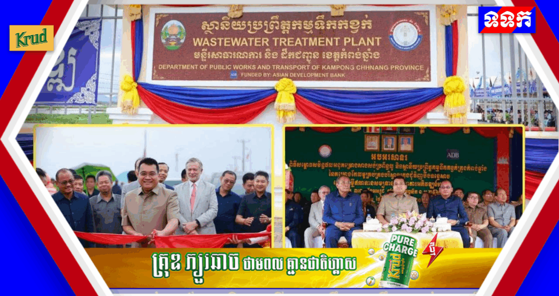 អនុគម្រោងសាងសង់ប្រព័ន្ធលូ និងស្ថានីយប្រព្រឹត្តកម្មទឹកកខ្វក់ក្រុងកំពង់ឆ្នាំង នៃគម្រោងកែលម្អគ្រប់គ្រងបរិស្ថានក្រុងជុំវិញបឹងទន្លេសាប ត្រូវបានសម្ពោធដាក់ឱ្យប្រើប្រាស់ជាផ្លូវការ