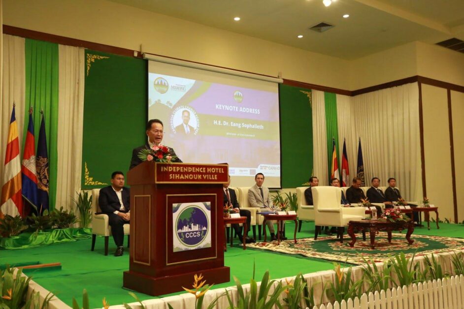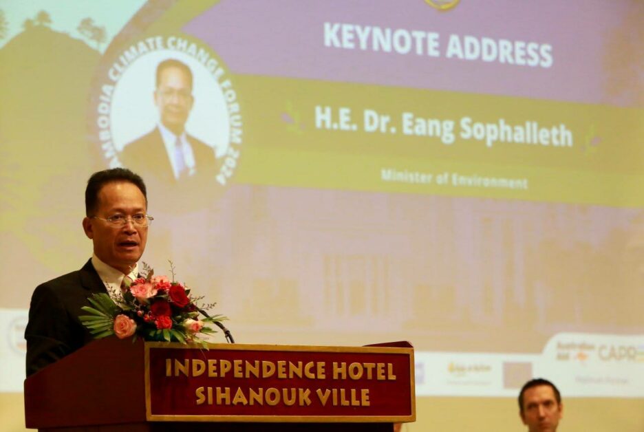 ការថ្លែងរបស់ឯកឧត្តមរដ្ឋមន្ត្រីក្រសួងបរិស្ថាន បានធ្វើឡើងក្នុងកិច្ចប្រជុំប្រចាំឆ្នាំស្តីពីការប្រែប្រួលអាកាសធាតុកម្ពុជាឆ្នាំ២០២៤ ដែលបាននិងកំពុងធ្វើឡើងនៅនៅសណ្ឋាគារឯករាជ្យ ក្រុងព្រះសីហនុ ចាប់ពីថ្ងៃទី២៤ ដល់ថ្ងៃទី២៥ ខែតុលា ឆ្នាំ២០២៤ ដែលមានការចូលរួមពីមន្ត្រីជាន់ខ្ពស់រាជរដ្ឋាភិបាល មន្ត្រីការទូត មន្ត្រីរាជការ ដៃគូអភិវឌ្ឍន៍ អ្នកជំនាញអាកាសធាតុ វិស័យឯកជន និងអង្គការសង្គមស៊ីវិលនានា ភ្ញៀវជាតិ និងអន្តរជាតិ ព្រមទាំងរដ្ឋបាលថ្នាក់ក្រោមជាតិ សរុបជាង៣០០នាក់។