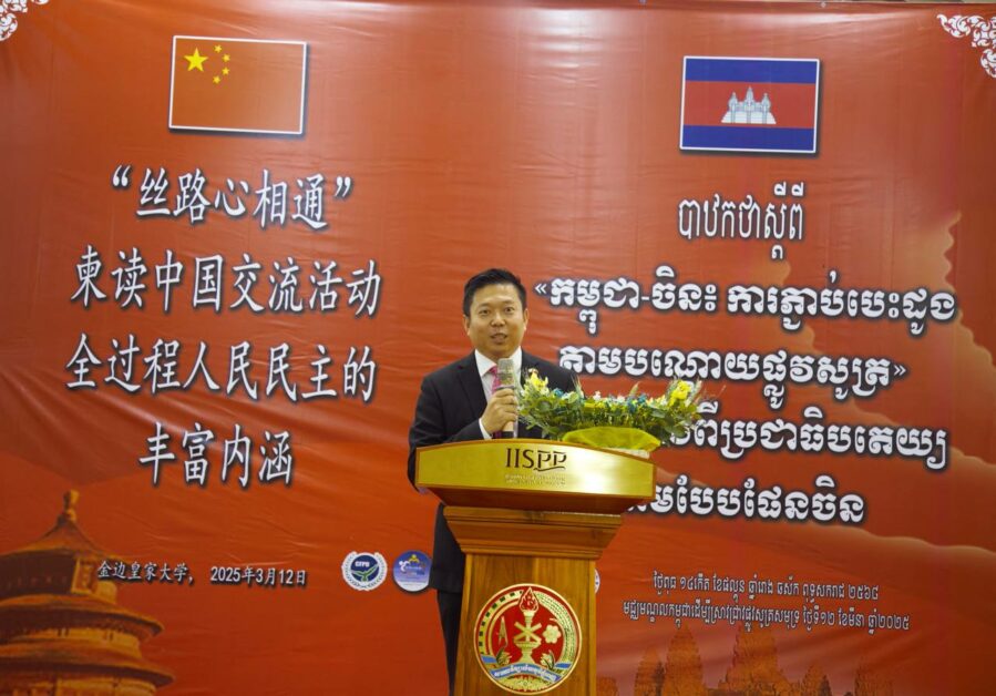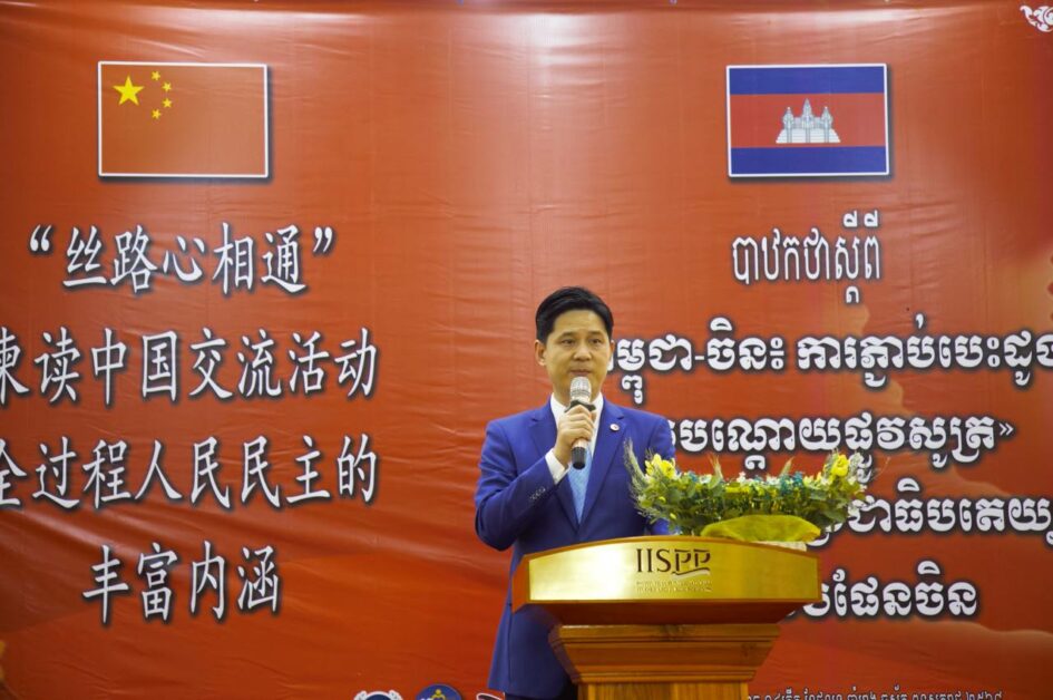 នៅមជ្ឈមណ្ឌលកម្ពុជាដើម្បីស្រាវជ្រាវផ្លូវសូត្រសមុទ្រ នារសៀលថ្ងៃទី១២ ខែមីនា ឆ្នាំ២០២៥ ការិយាល័យរបស់មូលនិធិចិនដើម្បីសន្តិភាពនិងការអភិវឌ្ឍប្រចាំកម្ពុជា និងសមាគមអ្នកស្រាវជ្រាវវឌ្ឍនភាពកម្ពុជា-ចិន បានរួមគ្នារៀបចំបាឋកថាស្តីពី «កម្ពុជា-ចិន៖ ការភ្ជាប់បេះដូងតាមបណ្តោយផ្លូវសូត្រ» ឈ្វេងយល់ពីប្រជាធិបតេយ្យតាមបែបផែនចិន។ ជម្រាបជូនដល់អង្គពិធីដែលអញ្ជើញមកពីទីស្តីការគណៈរដ្ឋមន្ត្រី ក្រសួងសាធារណការនិងដឹកជញ្ជូន ក្រសួងអប់រំ យុវជននិងកីឡា សមាគមមិត្តភាពកម្ពុជា-ចិន សហភាពសហព័ន្ធយុវជនកម្ពុជា សមាគមសិស្ស-និសិ្សតអាហារូបករណ៍ អ.ម.ត សភាសម្ព័ន្ធសហជីពជាតិកម្ពុជា សមាគមអ្នកសារព័ត៌មានកម្ពុជា-ចិន និស្សិត ស្ថានទូតចិនប្រចាំកម្ពុជា វិទ្យុមិត្តភាពកម្ពុជា-ចិន ផ្ទះយុវជនកម្ពុជា-ចិន និងអង្គពិធីទាំងមូល សរុបចំនួន១០០នាក់ លោកបណ្ឌិត ជា មុនីឫទ្ធិ ប្រធានសមាគមអ្នកស្រាវជ្រាវវឌ្ឍនភាពកម្ពុជា-ចិនបានរំលេចថា ការរៀបចំកម្មវិធីបាឋកថានេះក្នុងគោលបំណងរួមចំណែកសំខាន់៤គឺ ១-បង្កើនការយល់ដឹងកាន់តែស៊ីជម្រៅពីមហាសន្និបាតសភាទាំង២នៃប្រទេសចិន ២-ពន្លាតការឈ្វេងយល់ពីទម្រង់ប្រជាធិបតេយ្យតាមបែបផែនចិន ៣-ពង្រឹងទំនាក់ទំនងរវាងប្រជាជននិងប្រជាជន និង៤-ពង្រីកកិច្ចសហប្រតិបត្តិការកាន់តែស៊ីជម្រៅរវាងអង្គពាក់ព័ន្ធនានាស្តីពីអភិបាលកិច្ចប្រទេសចិន។