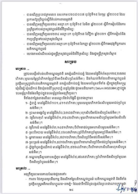 អនុក្រឹត្យនេះមានគោលបំណងធានាដល់កិច្ចគាំពារបរិស្ថាន ការអភិរក្សជីវៈចម្រុះការប្រើប្រាស់ធនធានធម្មជាតិប្រកបដោយនិរន្តរភាព និងកិច្ចការពារបេតិកភណ្ឌវប្បធម៌ឱ្យបានគង់វង្ស។ តំបន់បេតិកភណ្ឌធម្មជាតិ នគរភ្នំឈើកាច់បាភ្នំ មានផ្ទៃដីទំហំសរុប ១២៥,២៧៧៥ ហិកតា។ ក្នុងនោះ មានទីតាំងបេតិក ភណ្ឌវប្បធម៌ ប្រវត្តិសាស្ត្រក្នុងតំបន់ បេតិកភណ្ឌធម្មជាតិ នគរភ្នំឈើកាច់បាភ្នំ ៩ ទីតាំង ដូចជា ភ្នំបាភ្នំ ប្រាសាទអង្គច័ន្ទ វត្តវិហារគុហ៍ វត្តវិហារ ស្រះបិទបាយ អ្នកតាមេសរ ស្រះស្រង់ ភ្នំវត្តកំពូលភ្នំឈើកាច់ និង មណ្ឌលមុនីស្ថានតាបសភ្នំតូច។