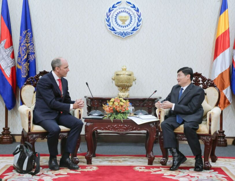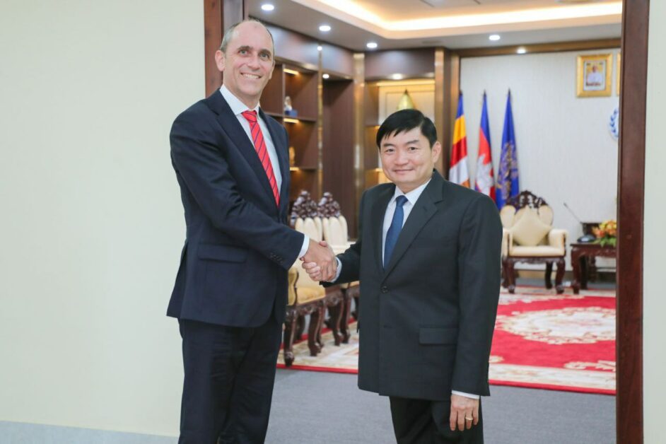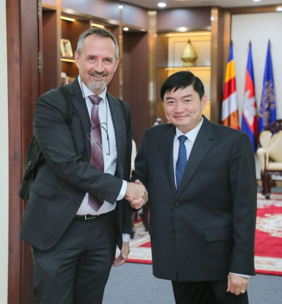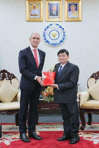 ឯកឧត្ដម ហេង សួរ រដ្ឋមន្ត្រីក្រសួងការងារ និងបណ្ដុះបណ្ដាលវិជ្ជាជីវៈ បានទទួលជួបសម្តែងការគួរសម និងពិភាក្សាការងារជាមួយលោក Jean-Gabriel Duss នាយកប្រចាំតំបន់នៃកិច្ចសហប្រតិបត្តិការសម្រាប់តំបន់មេគង្គ នៃទីភ្នាក់ងារសហប្រតិបត្តិការអភិវឌ្ឍន៍ស្វីស (SDC) នារសៀលថ្ងៃទី១៨ ខែកក្កដា ឆ្នាំ២០២៥ នៅទីស្តីការក្រសួង។