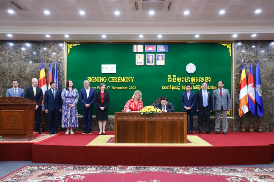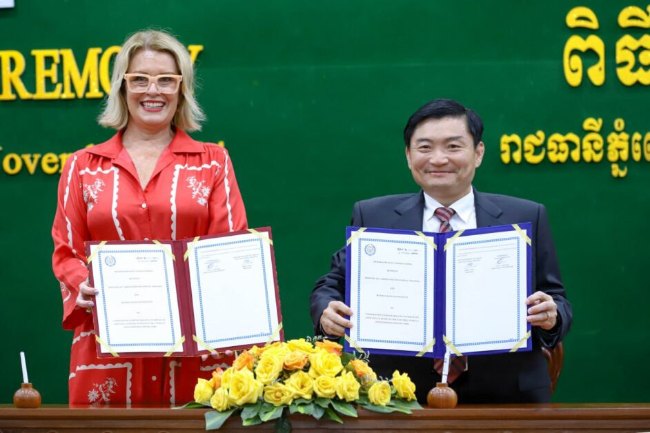 (ភ្នំពេញ)៖ ក្រសួងការងារ និងបណ្តុះបណ្តាលវិជ្ជាជីវៈ និងវិទ្យាស្ថាន Bendigo Kangan (BKI) នៃប្រទេសអូស្ត្រាលី បានចុះហត្ថលខាលើអនុស្សរណៈនៃការយោគយល់គ្នា ស្តីពីកិច្ចសហប្រតិបត្តិការកសាងផ្លូវសិក្សាជំនាញពេញមួយជីវិតក្នុងវិស័យរថយន្តអគ្គិសនី និងវិស័យពាក់ព័ន្ធនានា ដែលធ្វើឡើងនៅទីស្តីការក្រសួងការងារ និងបណ្តុះបណ្តាលវិជ្ជាជីវៈ នាព្រឹកថ្ងៃពុធ ទី២៧ ខែវិច្ឆិកា ឆ្នាំ២០២៤នេះ ស្ថិតក្រោមវត្តមានជាអធិបតីភាពរបស់ ឯកឧត្តម ហេង សួរ រដ្ឋមន្ត្រីក្រសួងការងារ និងបណ្តុះបណ្តាលវិជ្ជាជីវៈ រួមនិងលោកស្រី សលលី ឃូថែន (Sally Curtain) នាយិកាប្រតិបត្តិនៃវិទ្យាស្ថាន Bendigo Kangan (BKI) នៃប្រទេសអូស្ត្រាលី និងលោកស្រី ប៊្រីដហ្គេត ខូលីយឺ (Bridget Collier) អនុប្រធានបេសកកម្មនៃស្ថានទូតអូស្ត្រាលីប្រចាំកម្ពុជា។