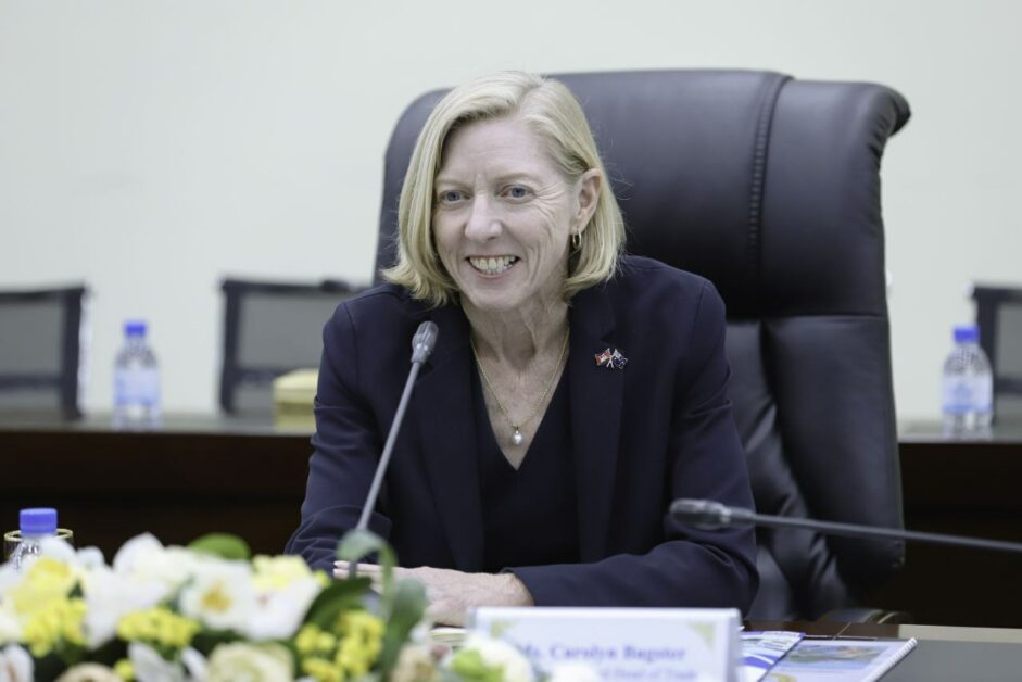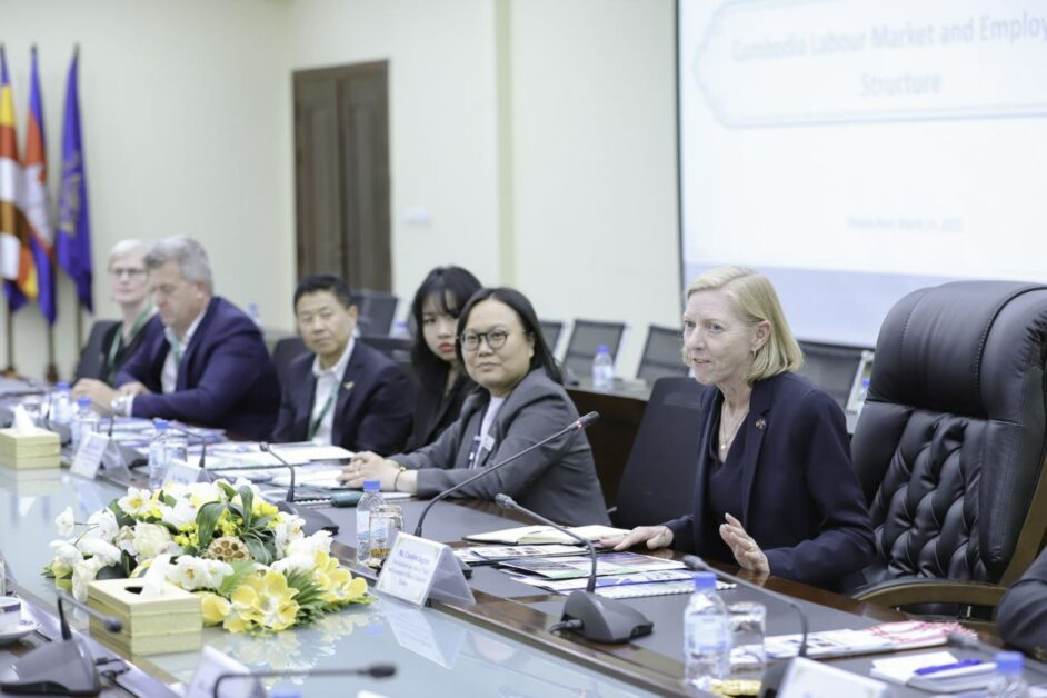 នារសៀល ថ្ងៃទី១៤ ខែមីនា ឆ្នាំ២០២៥នេះ ឯកឧត្តម ហេង សួរ រដ្ឋមន្ត្រីក្រសួងការងារ និងបណ្តុះបណ្តាលវិជ្ជាជីវៈ បានទទួលជួបសម្តែងការគួរសម និងពិភាក្សាការងារជាមួយគណៈប្រតិភូអូស្រ្តាលីដឹកនាំដោយលោកស្រី ខារ៉ូលីន ប៊េកស្ទ័រ (Carolyn Bagster) លេខាទី១ និងជាប្រធានការិយាល័យពាណិជ្ជកម្ម និងវិនិយោគនៃស្ថានទូតអូស្ត្រាលីប្រចាំកម្ពុជា។
