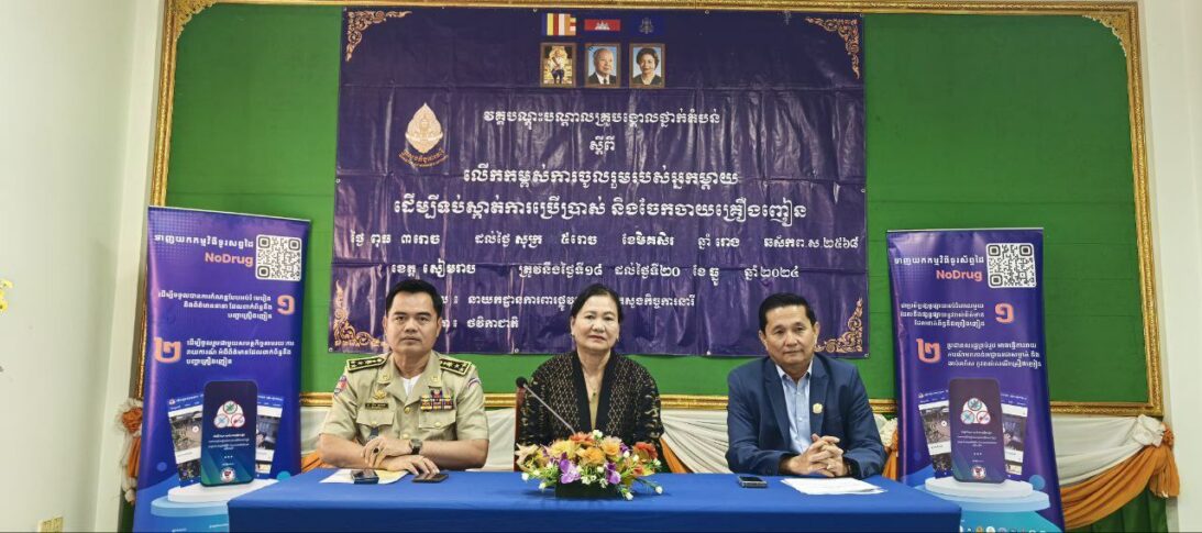 ខេត្តសៀមរាប៖ ថ្ងៃទី១៨ ខែធ្នូ ឆ្នាំ២០២៤ ក្រសួងកិច្ចការនារី និងអាជ្ញាធរជាតិប្រយុទ្ធប្រឆាំងគ្រឿងញៀនសហការបេីកវគ្គបណ្តុះបណ្តាលគ្រូបង្គោលថ្នាក់តំបន់ស្តីពី “លើកកម្ពស់ការចូលរួមរបស់អ្នកម្តាយ ដើម្បីទប់ស្កាត់ការជួញដូរ និងប្រើប្រាស់គ្រឿងញៀន” ជាមន្ត្រីក្រសួង និងមន្ទីរកិច្ចការនារីចំនួន១០ មាន:ខេត្តសៀមរាប កំពត កោះកុង ក្រចេះ ពោធិ៍សាត់ ព្រះសីហនុ ស្ទឹងត្រែង ឧត្តរមានជ័យ កែប និងខេត្តប៉ៃលិន ដើម្បីពង្រឹងសមត្ថភាពមន្ត្រីកិច្ចការនារីឱ្យទទួលបានចំណេះដឹងពីផលប៉ះពាល់នៃគ្រឿងញៀនក៏ដូចជាតួនាទីដ៏សំខាន់របស់ស្ត្រីជាម្តាយក្នុងការចូលរួមទប់ស្កាត់ការប្រើប្រាស់និងចែកចាយគ្រឿងញៀននៅក្នុងគ្រួសារនិងសហគមន៍។