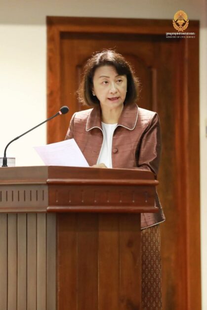 សូមជម្រាបថា សិក្ខាសាលានាព្រឹកនេះ ត្រូវបានរៀបចំឡើងជាមួយបទបង្ហាញរបស់ថ្នាក់ដឹកនាំក្រសួងមុខងារសាធារណៈ ចំនួនពីររូបគឺ៖ (១) ការបង្ហាញពីដំណើរការ នៃការពិនិត្យឡើងវិញ និងការវិភាគមុខងារ និងរចនាសម្ព័ន្ធ របស់ក្រសួង ស្ថាប័ន ដោយលោកជំទាវ ឈី វិជ្ជរ៉ា រដ្ឋលេខាធិការក្រសួងមុខងារសាធារណៈ និង (២) ការបង្ហាញពីការងារបំពេញគ្នា គាំទ្រគ្នា និងជំរុញការអនុវត្តការងាររួមគ្នា ក្នុងក្របខណ្ឌការកែទម្រង់ និងពង្រឹងអភិបាលកិច្ច ដោយឯកឧត្តម យក់ ប៊ុនណា រដ្ឋលេខាធិការប្រចាំការ ក្រសួងមុខងារសាធារណៈ៕