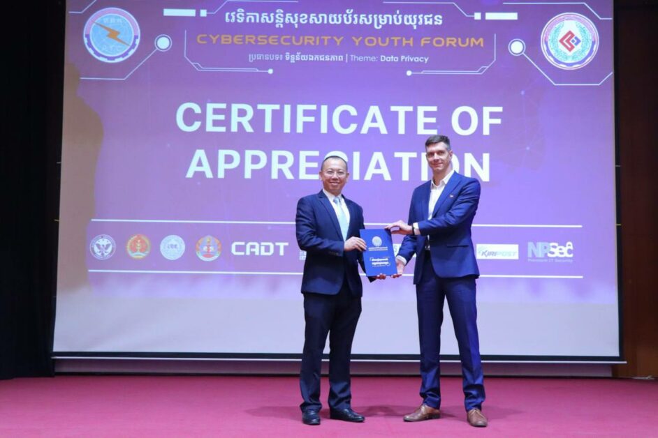 ក្រុមការងារបច្ចេកទេសនៃអគ្គនាយកដ្ឋានបច្ចេកវិទ្យាគមនាគមន៍ និងព័ត៌មាន នៃក្រសួងប្រៃសណីយ៍និងទូរគមនាគមន៍ បានរៀបចំគម្រោង “ខែនៃការយល់ដឹងអំពីសន្តិសុខសាយប័រ – Cyber Security Awareness Month” ដែលជាយុទ្ធនាការចូលរួមលើកកម្ពស់ និងបញ្ជ្រាបចំណេះដឹងអំពីទិន្នន័យឯកជនភាពនិងសុវត្ថិភាពសន្តិសុខសាយប័រ ដែលមានការអញ្ជើញចូលរួមពីឯកឧត្ដម សំ សិទ្ធិសិរី អគ្គនាយកនៃនាយកដ្ឋានបច្ចេកវិទ្យាគមនាគមន៍ នៃក្រសួងប្រៃសណីយ៍ និងទូរគមនាគមន៍។