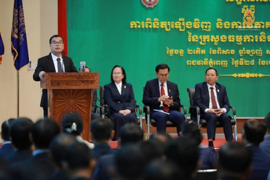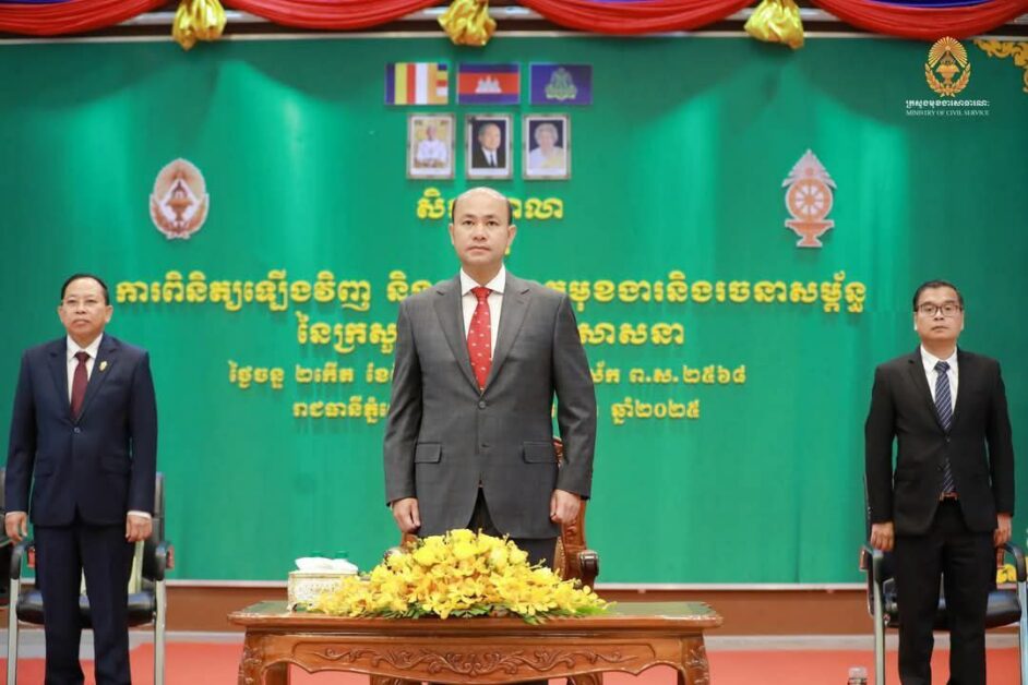 ក្រសួងមុខងារសាធារណៈ និងក្រសួងធម្មការនិងសាសនា បានសហការរៀបចំសិក្ខាសាលាស្តីពី «ការពិនិត្យឡើងវិញ ការវិភាគមុខងារនិងរចនាសម្ព័ន្ធនៃក្រសួងធម្មការនិងសាសនា» ក្រោមអធិបតីភាពដ៏ខ្ពង់ខ្ពស់ ឯកឧត្តម ហ៊ុន ម៉ានី ឧបនាយករដ្ឋមន្ត្រី រដ្ឋមន្ត្រីក្រសួងមុខងារសាធារណៈ ដោយមានវត្តមានអញ្ជើញចូលរួមដោយ ឯកឧត្តមបណ្ឌិត ចាយ បូរិន រដ្ឋមន្ត្រីក្រសួងធម្មការនិងសាសនា ព្រមទាំងថ្នាក់ដឹកនាំ និងមន្ត្រីជំនាញនៃក្រសួងទាំងពីរ នៅទីស្តីការក្រសួងធម្មការនិងសាសនា ព្រឹកថ្ងៃទី ២៨ ខែមេសា ឆ្នាំ២០២៥ ។
