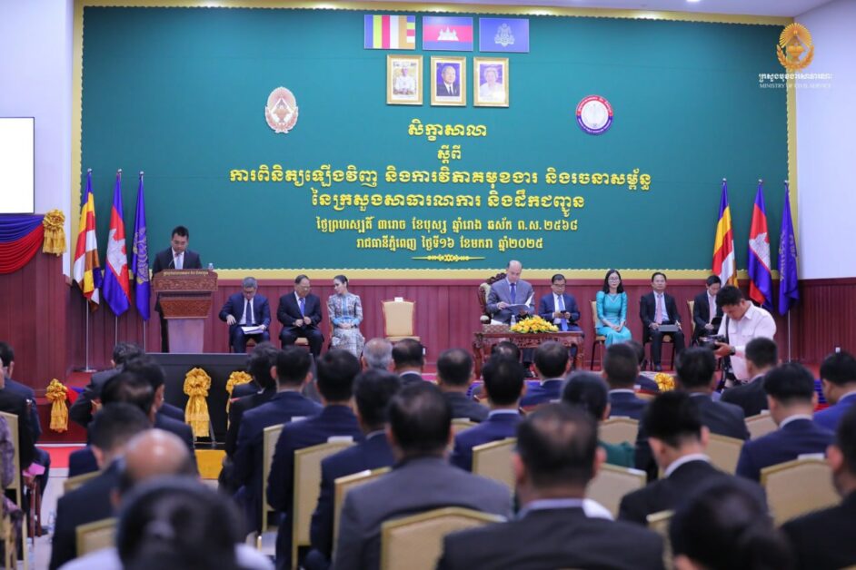 ព្រឹកថ្ងៃទី១៦ ខែមករា ឆ្នាំ២០២៥ ឯកឧត្តម ហ៊ុន ម៉ានី ឧបនាយករដ្ឋមន្ត្រី រដ្ឋមន្ត្រីក្រសួងមុខងារសាធារណៈ និងជាអនុប្រធានប្រចាំការគ.វ.រ. អញ្ជើញជាអធិបតី ក្នុងសិក្ខាសាលាស្តីពី «ការពិនិត្យឡើងវិញ ការវិភាគមុខងារ និងរចនាសម្ព័ន្ធនៃក្រសួងសាធារណការ និងដឹកជញ្ជូន» ដោយមានវត្តមានចូលរួមពី ឯកឧត្តម ប៉េង ពោធិ៍នា រដ្ឋមន្ត្រីក្រសួងសាធារណការ និងដឹកជញ្ជូន ព្រមទាំងថ្នាក់ដឹកនាំ និងមន្ត្រីជំនាញនៃក្រសួងទាំង២ និងមន្ទីរសាធារណការ និងដឹកជញ្ជូនរាជធានី ខេត្ត។