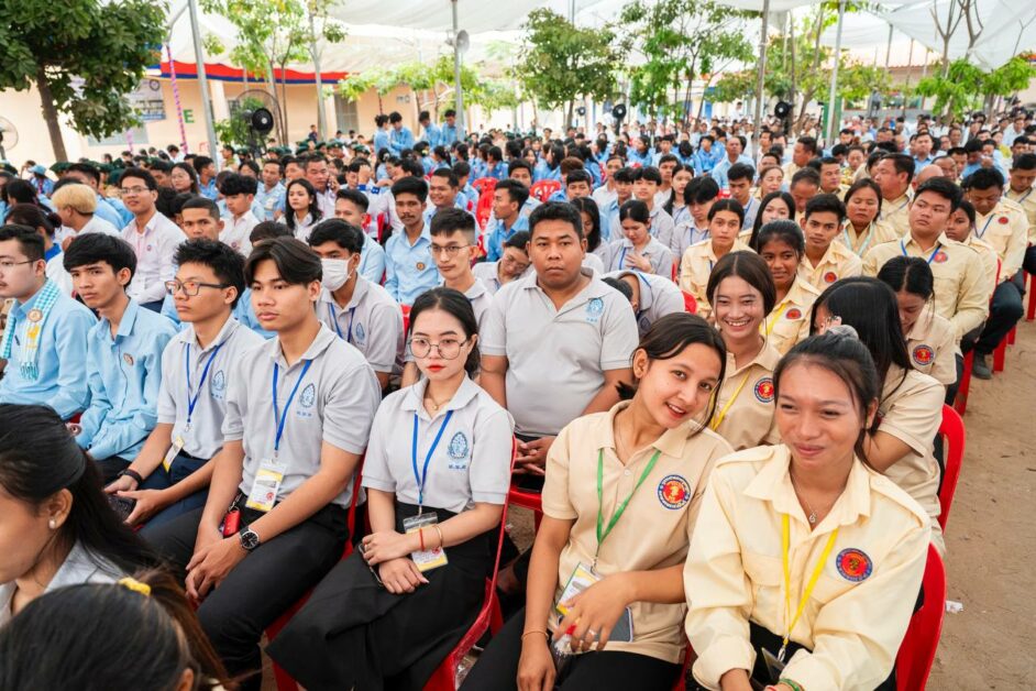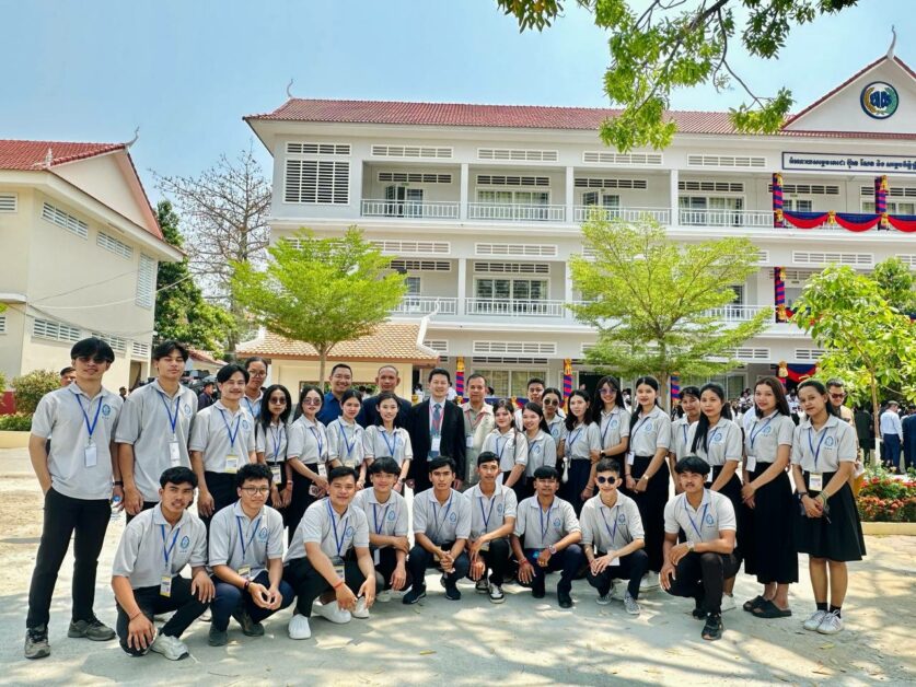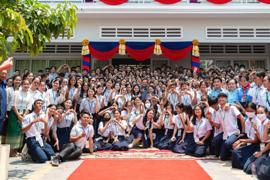 ក្រុមការងារ និងនិស្សិតអាហារូបករណ៍ អ.ម.ត រាជធានីភ្នំពេញ ចូលរួមអបអរសាទរពិធីសម្ពោធអគារសិក្សា ខ្លោងទ្វារ និងសមិទ្ធផលនានានៅវិទ្យាល័យ ហ៊ុន សែន សេរីភាព