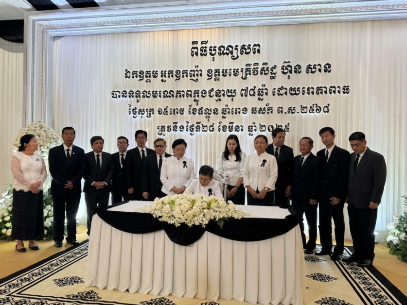 លោកជំទាវបណ្ឌិតសភាចារ្យ និងគណៈប្រតិភូ សូមចូលរួមរំលែកមរណទុក្ខដ៏ក្រៀមក្រំបំផុតនេះជាមួយ សម្ដេចអគ្គមហា សេនាបតីតេជោ និងសម្តេចកិត្តិព្រឹទ្ធបណ្ឌិត ព្រមទាំងក្រុមគ្រួសារ និងសូមឧទ្ទិសបួងសួងដល់ដួងវិញ្ញាណក្ខន្ធរបស់ ឯកឧត្តមអ្នកឧកញ៉ា ឧត្ដមមេត្រីវិសិដ្ឋ ហ៊ុន សាន សូមបានទៅសោយសុខនាឋានសុគតិភពកុំបីឃ្លៀងឃ្លាតឡើយ៕