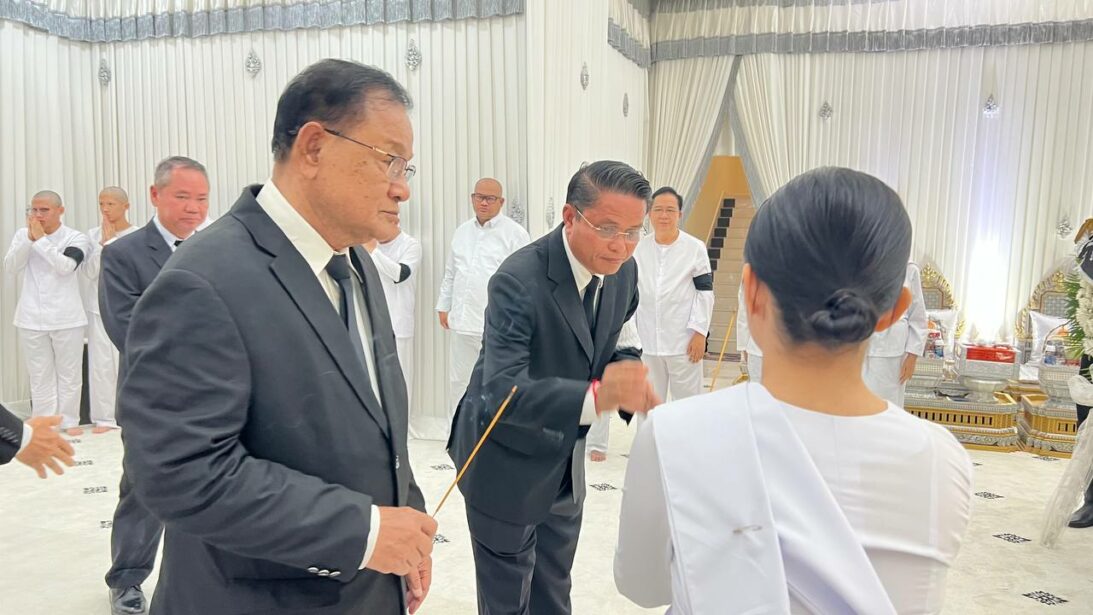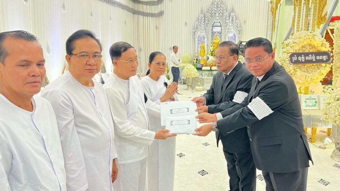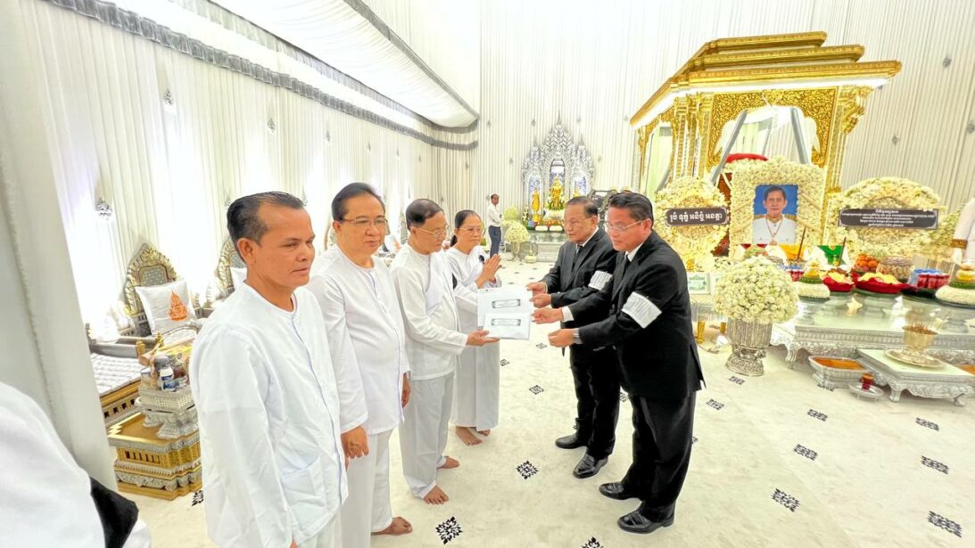 ក្នុងឱកាសប្រកបដោយក្តីសោកសង្រេង ខ្សឹកខ្សួល រំជួលចិត្តរកទីបំផុតគ្មាននេះ ឯកឧត្តម ខឹម សោភ័ណ្ឌ និង ឯកឧត្តម ហេង រតនា ព្រមទាំងគណៈប្រតិភូ បានសម្ដែងនូវសមានទុក្ខដ៏ក្រៀមក្រំ និងសូមគោរពចូលរួមរំលែកមរណទុក្ខចំពោះ សម្តេចអគ្គមហាសេនាបតីតេជោ ហ៊ុន សែន និង សម្ដេចកិត្តិព្រឹទ្ធបណ្ឌិត ប៊ុន រ៉ានី ហ៊ុនសែន នូវការបាត់បង់ដ៏ធំធេងនេះ។ មរណភាពរបស់ ឯកឧត្តមអ្នក ឧកញ៉ា ឧត្តមមេត្រីវិសិដ្ឋ មិនត្រឹមជាការបាត់បង់បងប្រុស បងថ្លៃ ឪពុកបង្កើត ឪពុកធំ ឪពុកក្មេក និងជីតា ប្រកបដោយ ព្រហ្មវិហារធម៌របស់ប្អូនៗ កូនចៅ និងក្មួយៗទាំងអស់នោះទេ ប៉ុន្តែជាការបាត់បង់ឥស្សរជនជាន់ខ្ពស់ដ៏ឆ្នើមមួយរូបរបស់កម្ពុជា ដែលកន្លងមក អ្នកឧកញ៉ាបានលះបង់កម្លាំងកាយចិត្ត ប្រាជ្ញា ស្មារតី និងវីរភាពអង់អាចប្រកបដោយឆន្ទៈមនសិការ ក្នុងបុព្វហេតុ បម្រើជាតិ សាសនា និងព្រះមហាក្សត្រ។