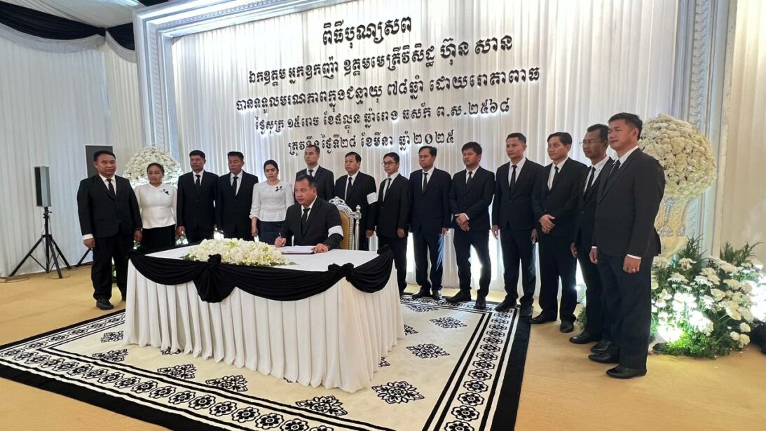 ក្នុងឱកាសចូលរួមរំលែកមរណទុកដ៍ក្រៀមក្រំជាមួយក្រុមគ្រួសារ សពឯកត្តម អ្នកអ្នកញ៉ាឧត្តមមេត្រីវិសិដ្ឋហ៊ុនសានដែលកំពុងតម្កល់ធ្វើបុណ្យតាមប្រពៃណីនៅគេហដ្ឋាននោះឯកឧត្តម សរ សុពុត្រាអភិបាលនៃគណៈអភិបាលខេត្ត ស្ទឹងត្រែង បានដឹកនាំ គណៈប្រតិភូរដ្ឋបាលខេត្តស្ទឹងត្រែង អញ្ជើញគោរពវិញ្ញាក្ខន្ធសព ឯកឧត្តម អ្នកញ៉ាឧត្តមមេត្រី វិសិដ្ឋហ៊ុន សាន នៅរសៀលថ្ងៃទី៣០ ខែមីនា ឆ្នាំ២០២៥។