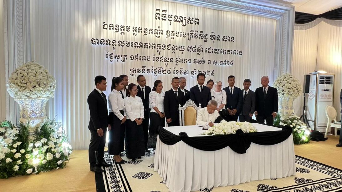 ក្នុងឱកាសចូលរួមរំលែកមរណទុកដ៍ក្រៀមក្រំជាមួយក្រុមគ្រួសារសព ឯកត្តម អ្នកអ្នកញ៉ា ឧត្តមមេត្រីវិសិដ្ឋ ហ៊ុន សាន ដែលកំពុងតម្កល់ធ្វើបុណ្យតាមប្រពៃណីជាតិ និងប្រពៃណីសាសនា, គណៈប្រតិភូសាកលវិទ្យាល័យបញ្ញាសាស្ត្រដឹកនាំដោយលោកបណ្ឌិត កុល ផេង បានអញ្ជើញគោរពវិញ្ញាណក្ខន្ធសព ឯកឧត្តម អ្នកញ៉ាឧត្តមមេត្រីវិសិដ្ឋ ហ៊ុន សាន នៅព្រឹកថ្ងៃទី ៣១ ខែមីនា ឆ្នាំ២០២៥។
