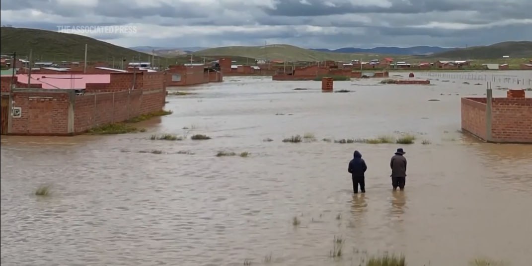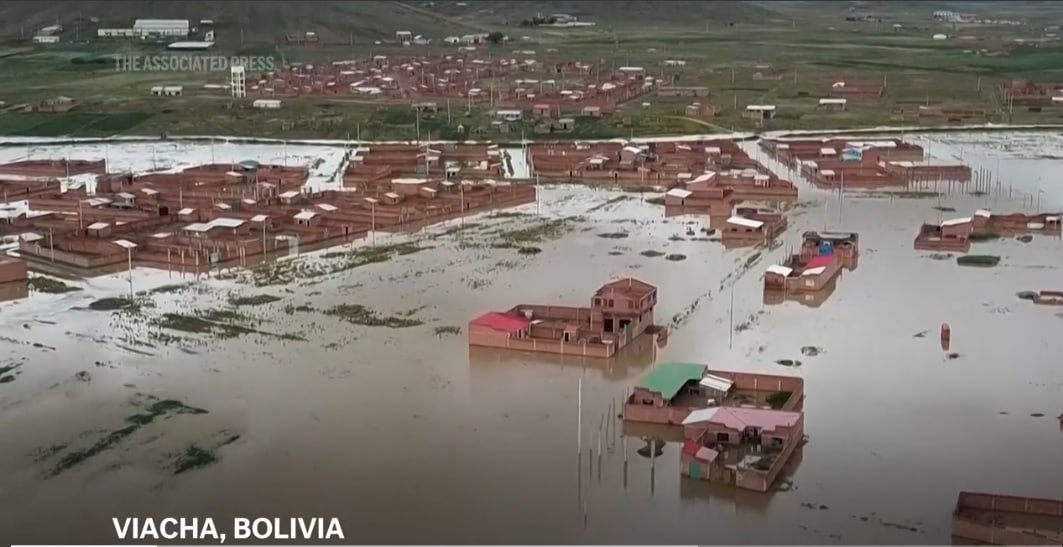 អ្នកស្រុកនៅក្នុងសហគមន៍ភ្នំ Viacha នៃប្រទេសបូលីវីកំពុងរងនូវស្ថាភាពខូចខាតជាដំណំនិងកំពុងរាប់ទំហំនៃការខូចខាតទាំងនោះដោយសារតែភ្លៀងធ្លាក់ខ្លាំងមិនឈប់ឈរដែលបណ្តាលឱ្យជន់លិចក្នុងតំបន់នោះដែរ។ មិនតែប៉ុណ្ណោះវាលស្រែ ចំការ និងផ្ទះជាច្រើនខ្នងជុំវិញតំបន់ភ្នំ Viacha និងតំបន់ខ្ពង់រាបបូលីវី ក៏ត្រូវបានជន់លិចដែរ បន្ទាប់ពីបាក់ច្រាំងទន្លេ ដោយសារតែដីសើមមិនឈប់។ ទឹកជំនន់នៅពេលនេះបានបំផ្លាញដំណាំដំឡូង និងប្រភេទស្រូវដ៏សំខាន់របស់បូលីវី ដែលជាមូលដ្ឋានគ្រឹះនៃសេដ្ឋកិច្ចក្នុងស្រុកដែរ។ កាលពីថ្ងៃពុធម្សិលមិញនេះ ក្រុមកសិករជាច្រើននាក់បានដើរឆ្លងកាត់ទឹកជន់ដើម្បីផ្លាស់ទីសត្វពាហនៈរបស់ពួកគេទៅកាន់ទីទួលខ្ពស់ ដើម្បីបន្តវិស័យកសិកម្មក្រោយពីទឹកស្រកវិញ។ មន្ត្រីការពារជនស៊ីវិលបាននិយាយថា មនុស្សប្រហែលជា៦០០០នាក់បានរងផលប៉ះពាល់ដោយសារជំនន់ទឹកភ្លៀងក្នុងតំបន់នេះ ខណៈដែលទីតាំងផ្សេងមួយចំនួន ក៏រងផលប៉ះពាល់ដែរ៕