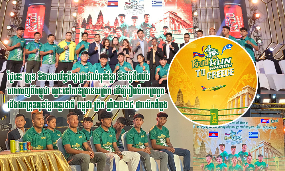 ថ្ងៃនេះ គ្រុឌ និងសហព័ន្ធកីឡាប្រដាល់គុនខ្មែរ នឹងធ្វើដំណើរចាកចេញពីកម្ពុជា ឆ្ពោះទៅកាន់ប្រទេសក្រិក ដើម្បីរៀបចំការប្រកួតជើងឯកគ្រុឌគុនខ្មែរអន្តរជាតិ កម្ពុជា-ក្រិក ឆ្នាំ២០២៤ ជាលើកដំបូង