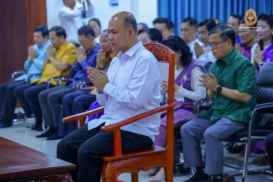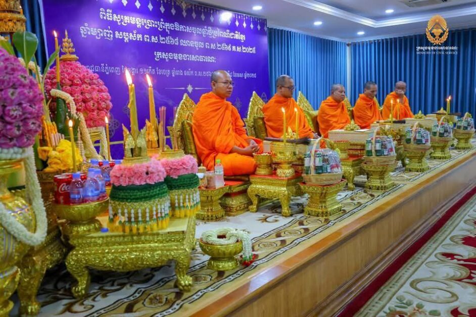 ក្រសួងមុខងារសាធារណៈ បានរៀបចំពិធីសូត្រមន្ត ចម្រើនព្រះបរិត្ត នាឱកាសត្រៀមទទួលអំណរសាទរក្នុងឱកាសបុណ្យចូលឆ្នាំថ្មី ប្រពៃណីជាតិខ្មែរ ឆ្នាំម្សាញ់ សប្តស័ក ព.ស.២៥៦៨-២៥៦៩ នាពេលខាងមុខ នៅទីស្តីការក្រសួងមុខងារសាធារណៈ នារសៀលថ្ងៃទី០៨ ខែមេសា ឆ្នាំ២០២៥ ដោយមានការអញ្ជើញចូលរួមពីសំណាក់ ឯកឧត្តម ហ៊ុន ម៉ានី ឧបនាយករដ្ឋមន្ត្រី រដ្ឋមន្ត្រីក្រសួងមុខងារសាធារណៈ និងថ្នាក់ដឹកនាំ ព្រមទាំងមន្ត្រីរាជការក្រោមឱវាទជាច្រើនរូប។