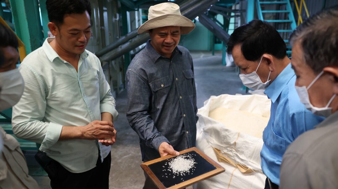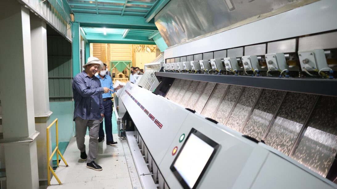 បន្ទាប់មក ឯកឧត្តមបណ្ឌិត កៅ ថាច បានបន្តដំណើរ អញ្ជើញចុះសួរសុខទុក្ខនិងពិនិត្យមើលខ្សែសង្វាក់ផលិតកម្មរបស់ គឺ ទី១ ចាប់ផ្តើមនៅរោងម៉ាស៊ីនកិនស្រូវចំនួន ០២ ទីតាំង ដែលមានទីតាំង ស្ថិតក្នុងខេត្តកំពង់ចាម រួមមានរោងម៉ាស៊ីនកិនស្រូវ យូឃីម ស្ថិតនៅក្នុងស្រុកបាធាយ និងរោងម៉ាស៊ីនកិនស្រូវ សេកមាស ស្ថិតក្នុងស្រុកជើងព្រៃ។