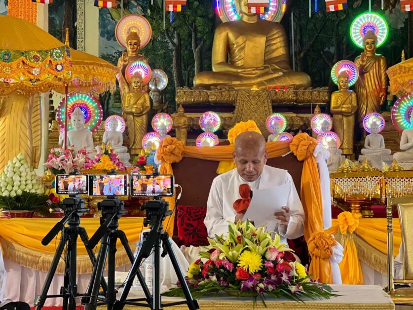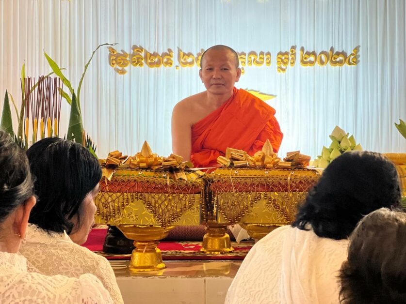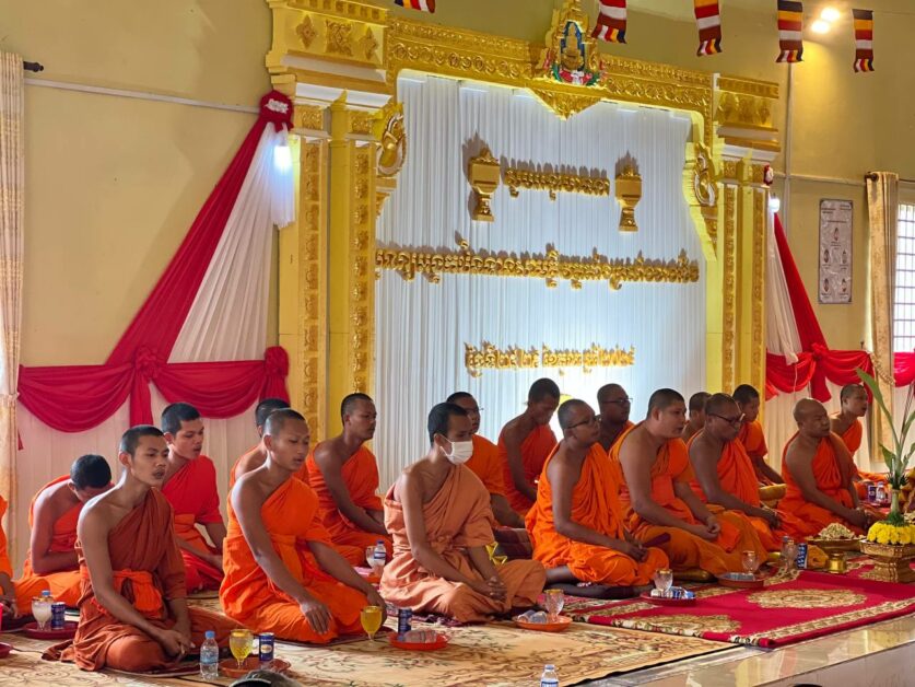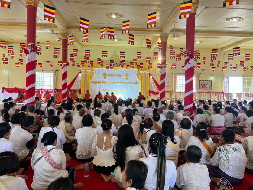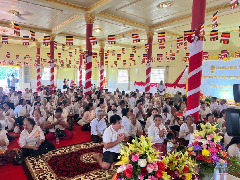 ទិដ្ឋភាពប្រជាពទ្ធបរិស័ទចំណុះជើងវត្តជួបជុំ ស្តាប់នូវធម្មទេសនា ពិធីបុណ្យអង្គកឋិនទានសាមគ្គី នៅវត្តតាំងក្រសាំងខាងជើង