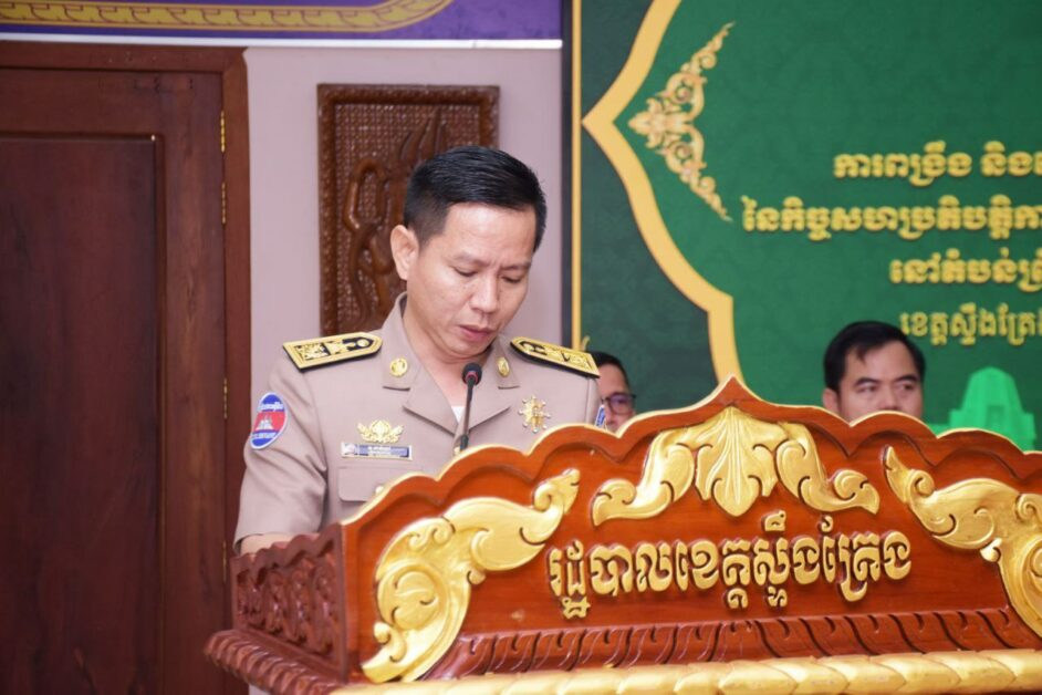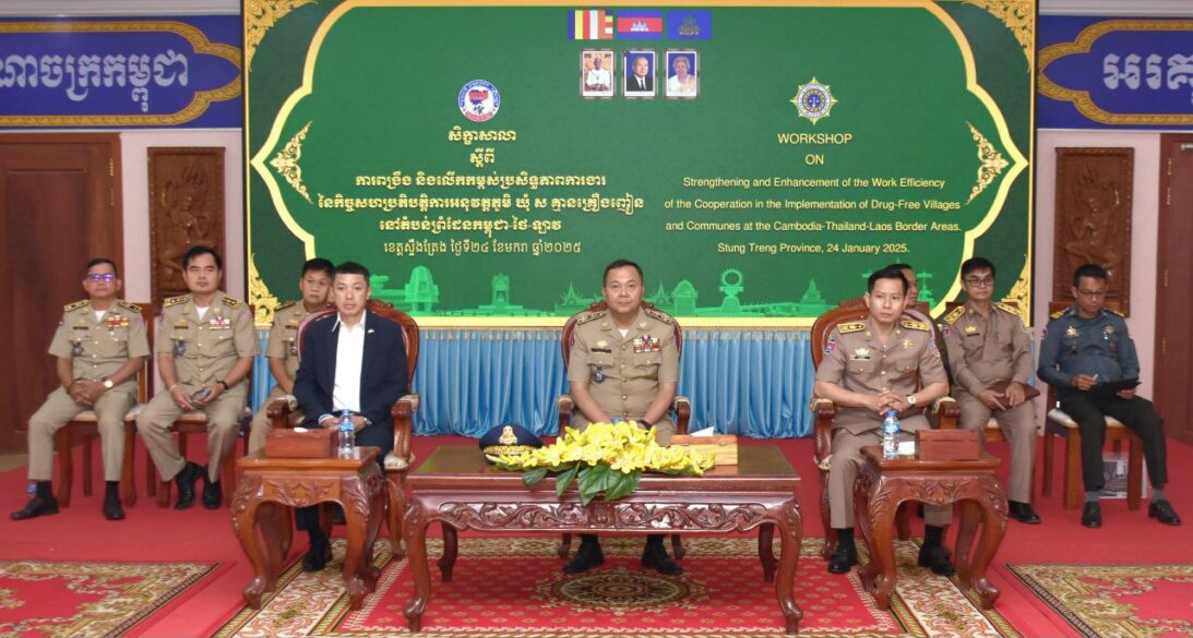ខេត្តស្ទឹងត្រែង: ឯកឧត្តម នាយឧត្តមសេនីយ៍ មាស វិរិទ្ធ អគ្គលេខាធិការនៃអាជ្ញាធរជាតិប្រយុទ្ធប្រឆាំងគ្រឿងញៀនថ្លែងបែបនេះនៅក្នុងសិក្ខាសិលាស្តីពីការពង្រឹង និងលើកកម្ពស់ប្រសិទ្ធភាពការងារនៃកិច្ចសហប្រតិបត្តិការអនុវត្តភូមិ ឃុំ ស គ្មាន គ្រឿងញៀន នៅតំបន់ព្រំដែនកម្ពុជា-ថៃ-ឡាវ ក្រោមជំនួយ LOA ឆ្នាំ២០២៤ នាព្រឹកថ្ងៃទី២៤ ខែមករា ឆ្នាំ២០២៥ ។