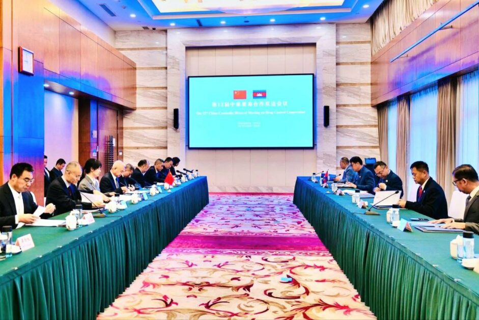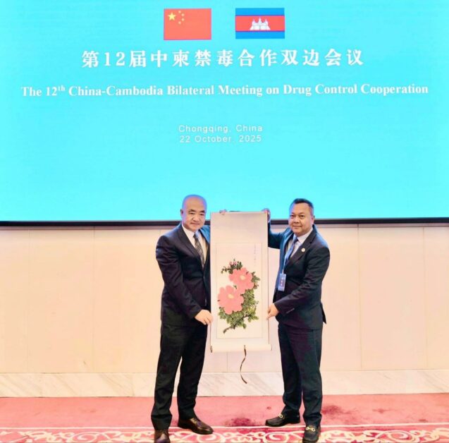 ប្រទេសចិន : ឯកឧត្តម នាយឧត្តមសេនីយ៍ មាស វិរិទ្ធ អគ្គលេខាធិការនៃអាជ្ញាធរជាតិប្រយុទ្ធប្រឆាំងគ្រឿងញៀនជម្រាបជូនបែបនេះ ខណៈ:លោកដឹកនាំប្រតិភូកម្ពុជាចូលរួមកិច្ចប្រជុំទ្វេភាគី កម្ពុជា-ចិន លើកទី១២ ស្តីពីកិច្ចសហប្រតិបត្តិការត្រួតពិនិត្យគ្រឿងញៀន ជាមួយភាគីចិនដឹកនាំដោយ ឯកឧត្តម វេ ស៊ាវយុន (Wei XiaoJun) អគ្គលេខាធិការប្រតិបត្តិ នៃគណៈកម្មាធិការត្រួតពិនិត្យគ្រឿងញៀន និងជាអគ្គនាយក នៃអគ្គនាយកដ្ឋានគ្រឿងញៀន ក្រសួងសន្តិសុខសាធារណៈ នៃសាធារណៈរដ្ឋប្រជាមានិតចិន នៅទីក្រុង ឆុងឈីង សាធារណរដ្ឋប្រជាមានិតចិន ថ្ងៃទី២២ ខែតុលា ឆ្នាំ២០២៥ ផ្តោតទៅលើកិច្ចពិភាក្សាការងារសំខាន់ចំនួន៤ រូមមាន ៖