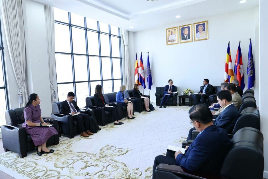 នៅទីស្តីការក្រសួង នារសៀលថ្ងៃអង្គារ ទី១១ ខែមីនា ឆ្នាំ២០២៥ ឯកឧត្តម ប៉េង ពោធិ៍នា រដ្ឋមន្រ្តីក្រសួងសាធារណការ និងដឹកជញ្ជូន បានអនុញ្ញាតឱ្យ ឯកឧត្តម ដេរិក យីប (Derek YIP) ឯកអគ្គរដ្ឋទូតវិសាមញ្ញ និងពេញសមត្ថភាពនៃប្រទេសអូស្រ្តាលី ប្រចាំព្រះរាជាណាចក្រកម្ពុជា និងប្រតិភូ ចូលជួបសម្តែងការគួរសម និងពិភាក្សាការងារ ដោយមានការចូលរួមពី ឯកឧត្តម លោកជំទាវ ជាថ្នាក់ដឹកនាំក្រសួងមួយចំនួនផងដែរ។