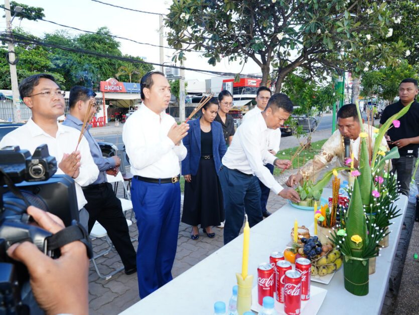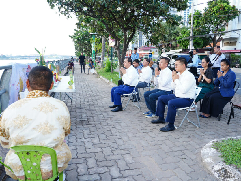 ដើម្បីចូលរួមអបអរសាទរ ព្រះរាជពិធីបុណ្យអុំទូក បណ្តែតប្រទីប និងសំពះព្រះខែ អកអំបុក ឆ្នាំ២០២៤ ដែលនឹងប្រារព្ធធ្វើចាប់ពីថ្ងៃទី១៤ ដល់ថ្ងៃទី១៦ ខែវិច្ឆិកា ខាងមុខនេះ ថ្នាក់ដឹកនាំ និងមន្ត្រីជំនាញបច្ចេកទេសគណៈកម្មការរៀបចំប្រទីប ក្រសួងព័ត៌មាន ដឹកនាំដោយ ឯកឧត្តម រដ្ឋមន្ត្រី នេត្រ ភក្ត្រា បានរៀបចំពិធីក្រុងពាលី សុំសេចក្តីសុខសប្បាយពីម្ចាស់ទឹក ម្ចាស់ដី ដើម្បីរៀបចំសាងសង់ប្រទីបក្រសួងព័ត៌មាន នារសៀលថ្ងៃទី២៥ ខែតុលា ឆ្នាំ២០២៤ នៅតាមបណ្តោយដងទន្លេសាប ខណ្ឌជ្រោយចង្វារ រាជធានីភ្នំពេញ ។