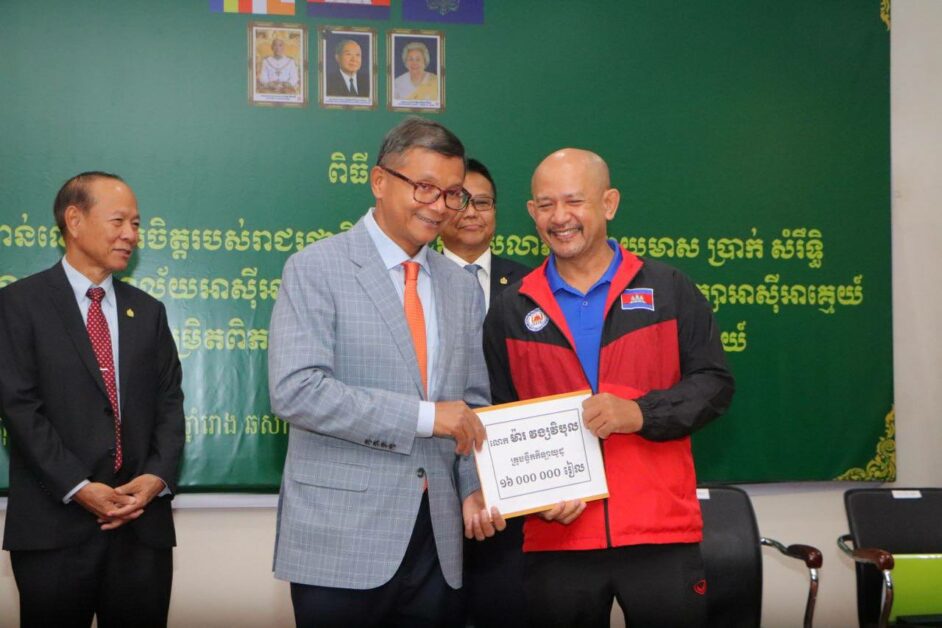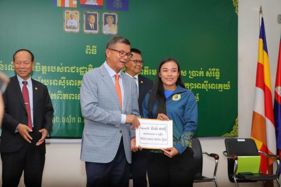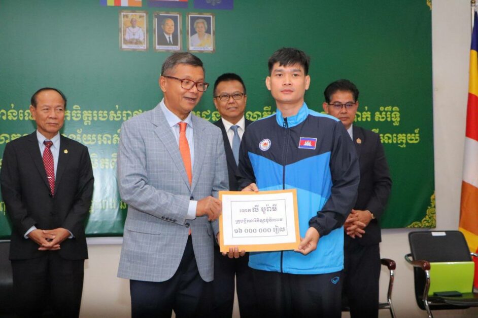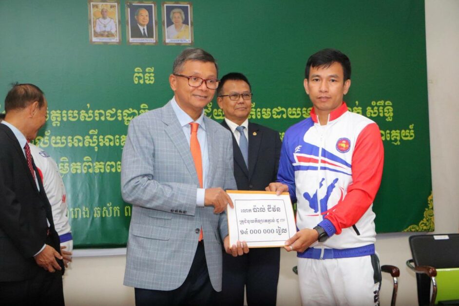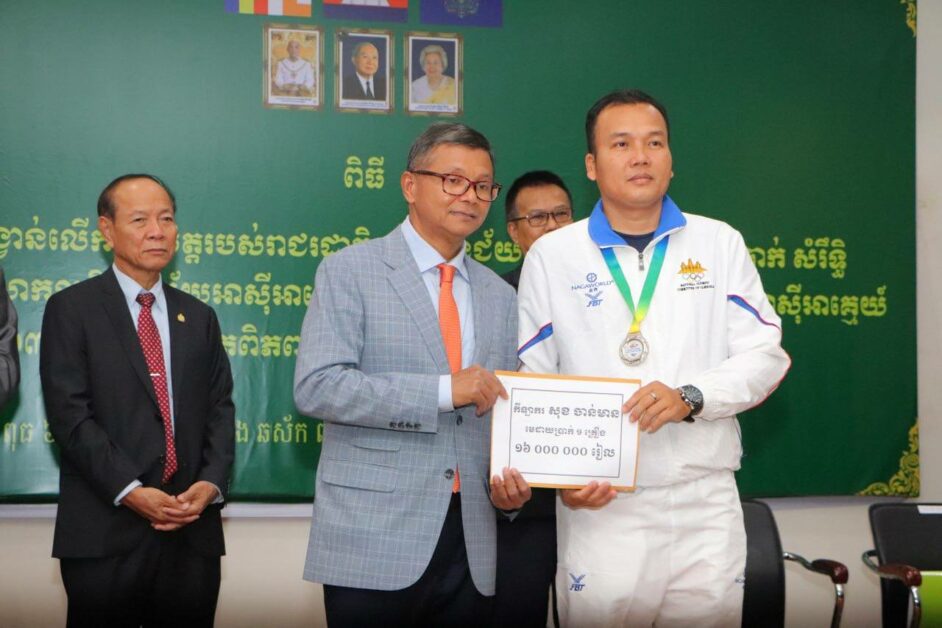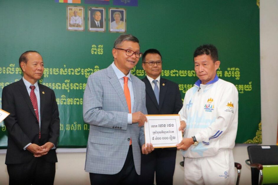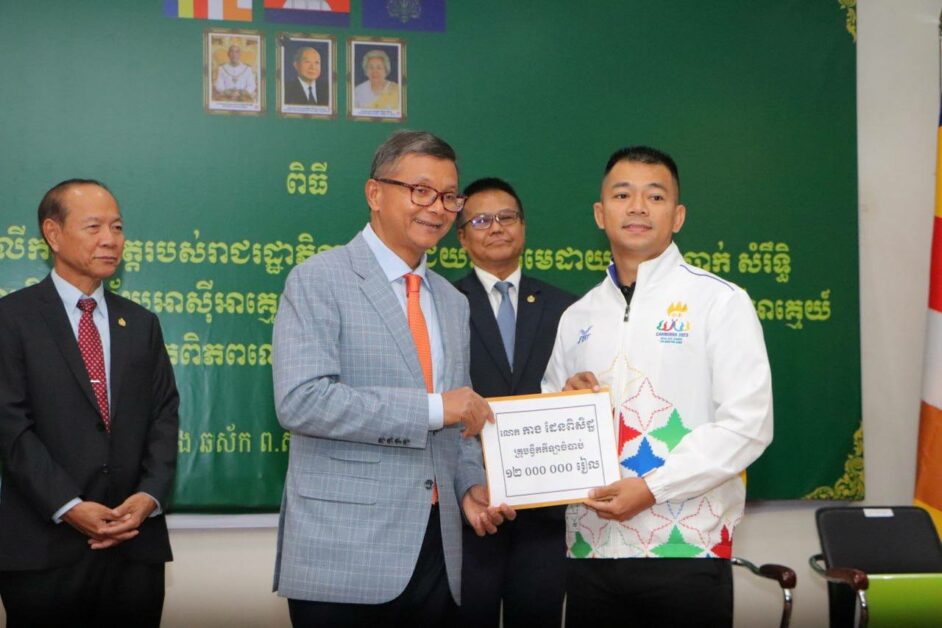 ប្រាក់រង្វាន់លើកទឹកចិត្ត របស់រាជរដ្ឋាភិបាលកម្ពុជា ប្រមាណជាង ១លាន២សែន ដុល្លារអាមេរិក ត្រូវបានផ្តល់ជូនម្ចាស់ជ័យលាភី ដែលដណ្តើមបានមេដាយមាស ប្រាក់ សំរិទ្ធ ពីការប្រកួតកីឡាសាកលវិទ្យាល័យអាស៊ីអាគ្នេយ៍ លើក២១ កីឡា សិស្សមធ្យមអាស៊ីអាគ្នេយ៍ លើកទី១៣ ជើងឯកកម្រិតពិភពលោក កម្រិតអាស៊ី និងកម្រិតអាស៊ីអាគ្នេយ៍ ។