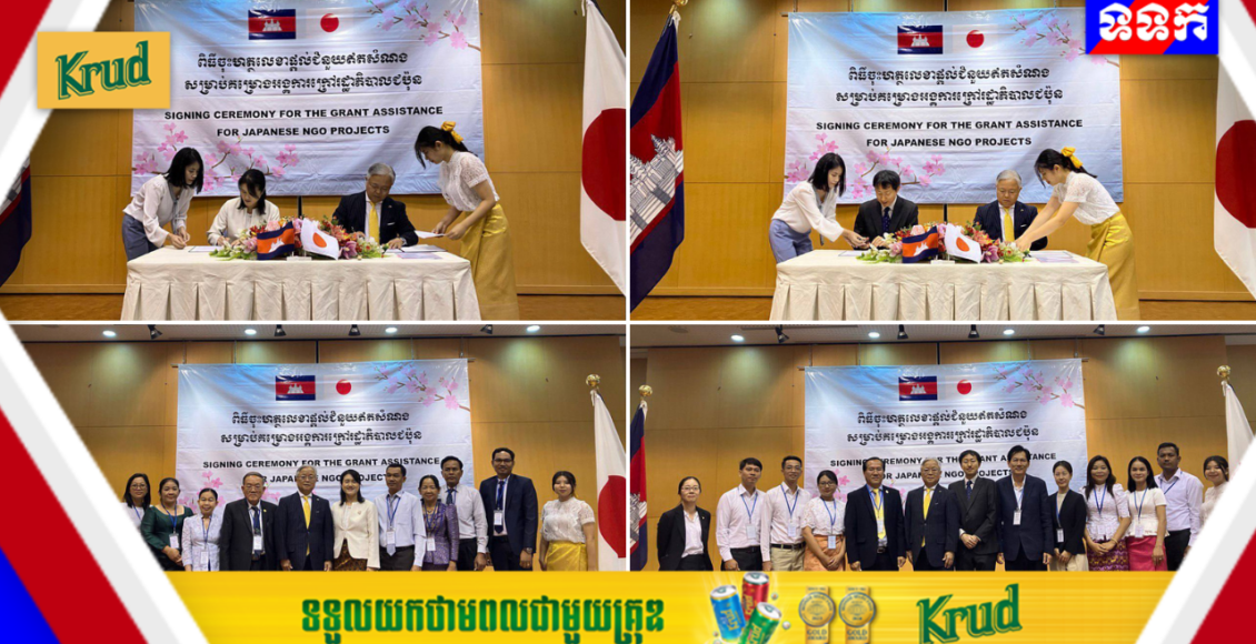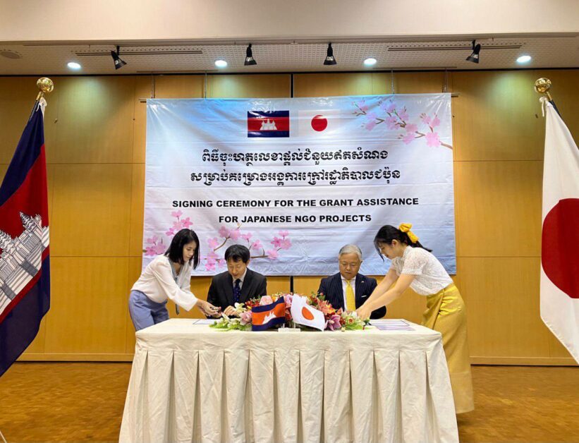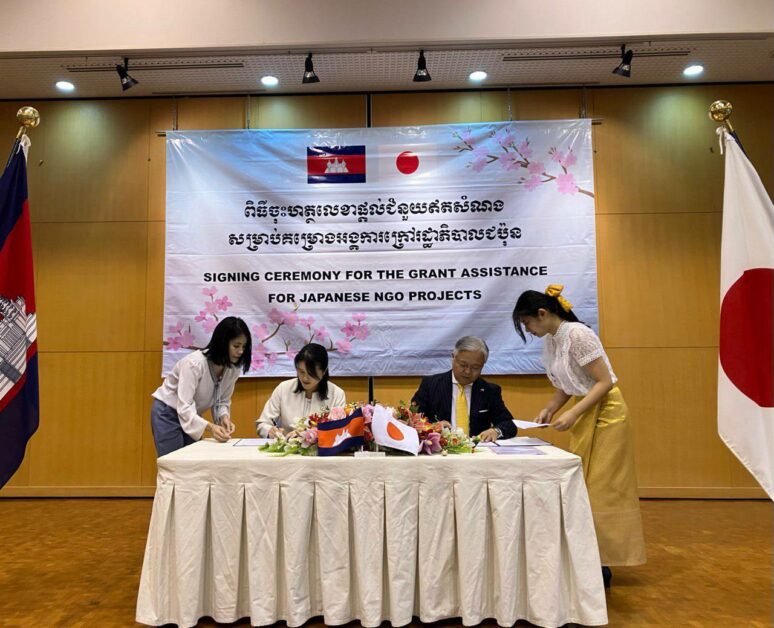 ស្ថានទូនជប៉ុនប្រចាំកម្ពុជាបានរៀបចំពិធីចុះហត្ថលេខាផ្តល់ជំនួយឥតសំណង សម្រាប់គម្រោងអង្គការក្រៅរដ្ឋាភិបាលជប៉ុន ក្រោមអធិបតីឯកឧត្តម អ៊ូអិណុ អាត់ស៊ូស៊ី ឯកអគ្គរាជទូតវិសាមញ្ញ និង ពេញសមត្ថភាពរបស់ប្រទេសជប៉ុនប្រចាំព្រះរាជាណាចក្រកម្ពុជា។