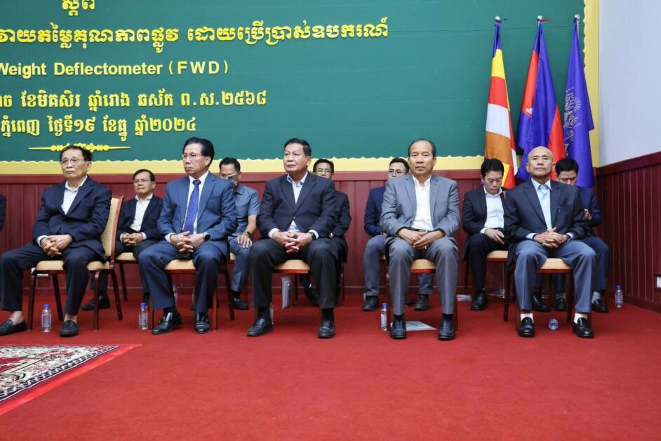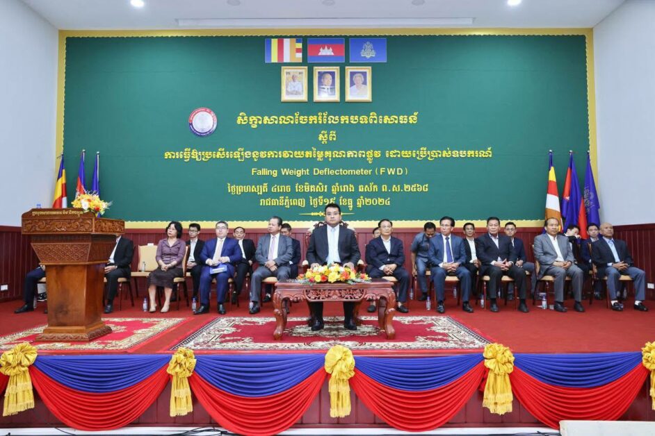 នៅទីស្តីការក្រសួង នារសៀលថ្ងៃព្រហស្បតិ៍ ទី១៩ ខែធ្នូ ឆ្នាំ២០២៤ ឯកឧត្តម ប៉េង ពោធិ៍នា រដ្ឋមន្រ្តីក្រសួងសាធារណ ការ និងដឹកជញ្ជូន បានអញ្ជើញជាអធិបតីក្នុងពិធីបិទសិក្ខាសា លាចែករំលែកបទពិសោធន៍ស្តីពី “ការធ្វើឱ្យប្រសើរឡើងនូវការវាយតម្លៃគុណភាពផ្លូវ ដោយប្រើប្រាស់ឧបករណ៍ Falling Weight Deflectometer – FWD ដែលមានការចូលរួមពី ឯកឧត្តម និងលោកជំទាវ ជាថ្នាក់ដឹកនាំក្រសួង លោកបណ្ឌិតសាស្រ្តាចារ្យ និងមន្រ្តីពាកព័ន្ធជាច្រើនរូបផងដែរ។