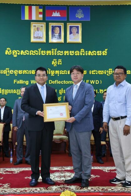 ពិធីបិទសិក្ខាសាលាចែករំលែកបទពិសោធន៍ស្តីពីការធ្វើឱ្យប្រសើរឡើងនូវការវាយតម្លៃគុណភាពផ្លូវ ដោយប្រើប្រាស់ឧបករណ៍ Falling Weight Deflectometer -FWD ក្រោមអធិបតីភាព ឯកឧត្តម ប៉េង ពោធិ៍នា រដ្ឋមន្រ្តីក្រសួងសាធារណការ និងដឹកជញ្ជូន