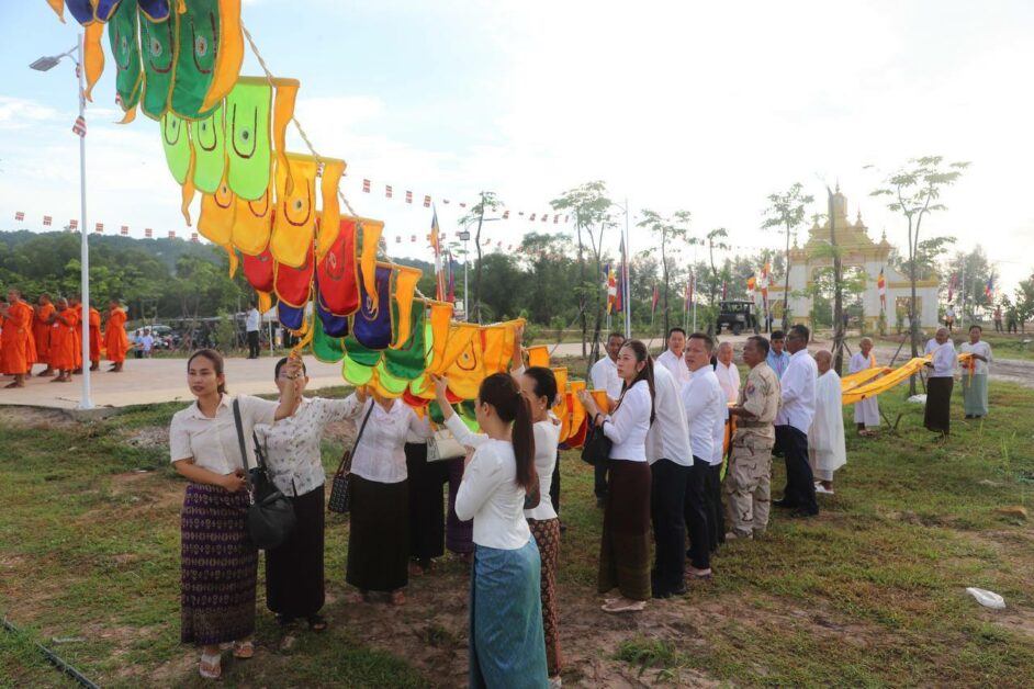 -ពិធីបង្ហូតទង់ព្រះពុទ្ធសាសនានៅមុខព្រះវិហារ