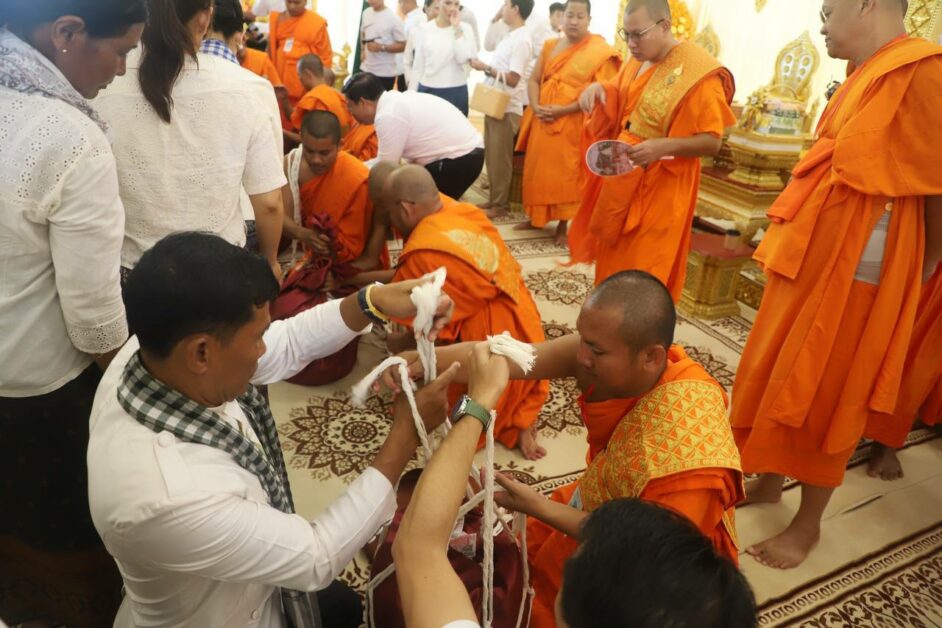 ក្រោមអធិបតីដ៏ខ្ពង់ខ្ពស់ សម្តេចក្រឡាហោម ស ខេង ឧត្តមប្រឹក្សាផ្ទាល់ព្រះមហាក្សត្រ នៃ ព្រះរាជាណាចក្រកម្ពុជា និងលោកជំទាវ ញ៉ែម សាខន ព្រមទាំង បុត្រា បុត្រី ចៅប្រុស ចៅស្រី និងក្រុមគ្រួសារ រួមជាមួយនឹងព្រះចៅអធិការ គ្រូសូត្រស្តាំ ឆ្វេង ព្រះសង្ឃ អាចារ្យ គណៈកម្មការ ពុទ្ធបរិស័ទចំណុះជើងវត្ត។