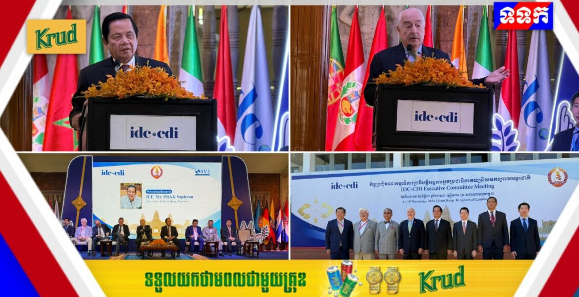 ពិធីបើកវេទិកាពិសេសស្តីពី “សន្តិភាពសម្រាប់មនុស្សជាតិ និងភពផែនដី“ នៃកិច្ចប្រជុំគណៈកម្មាធិការប្រតិបត្តិអង្គការអ្នកប្រជាធិបតេយ្យនិយមកណ្តាលអន្តរជាតិ IDC-CDI នៅសណ្ឋាគារ Raffles Grand Hotel Angkor ខេត្តសៀមរាប នៅព្រឹកថ្ងៃទី ១៨ ខែវិច្ឆិកា ឆ្នាំ ២០២៤នេះ។