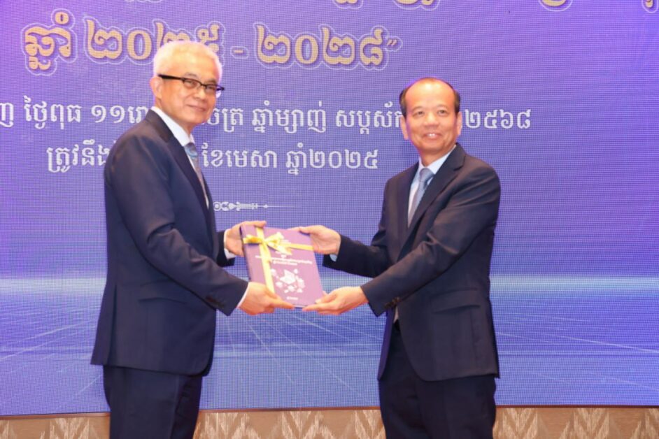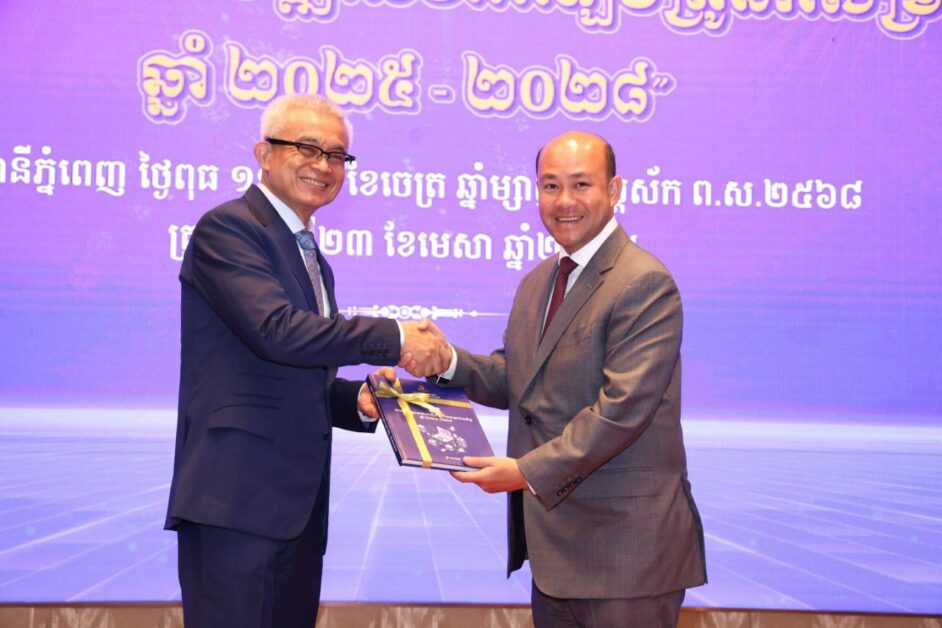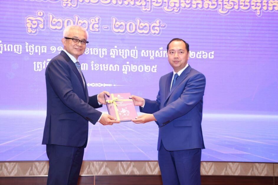 នាព្រឹកថ្ងៃ ពុធ ទី ២៣ ខែ មេសា ឆ្នាំ ២០២៥ នៅសណ្ឋាគារហៃយ៉ាត់ រីជិនស៊ី ភ្នំពេញ, លេខាធិការដ្ឋានក្រុមការងារអន្តរក្រសួងរៀបចំសេវាអេឡិចត្រូនិកសម្រាប់ធុរកិច្ច បានរៀបចំពិធីប្រកាសដាក់ឱ្យអនុវត្តជាផ្លូវការនូវ ”យុទ្ធសាស្ត្រស្តីពីការអភិវឌ្ឍសេវាអេឡិចត្រូនិកសម្រាប់ធុរកិច្ច ឆ្នាំ ២០២៥ – ២០២៨” ដែលប្រព្រឹត្តទៅក្រោមអធិបតីភាពដ៏ខ្ពង់ខ្ពស់របស់ ឯកឧត្តមអគ្គបណ្ឌិតសភាចារ្យ អូន ព័ន្ធមុនីរ័ត្នឧបនាយករដ្ឋមន្រ្តី រដ្ឋមន្រ្តីក្រសួងសេដ្ឋកិច្ច និង ហិរញ្ញវត្ថុ និង ជាប្រធានគណៈ- កម្មាធិការសេដ្ឋកិច្ច និង ធុរកិច្ចឌីជីថល និង ជាតំណាងដ៏ខ្ពង់ខ្ពស់របស់ សម្ដេចមហាបរវធិបតី ហ៊ុន ម៉ាណែត នាយករដ្ឋមន្រ្តីនៃព្រះរាជាណាចក្រកម្ពុជា។ ពិធីនេះមានការអញ្ជើញចូលរួមពី ឯកឧត្តមឧបនាយករដ្ឋមន្ត្រី, ឯកឧត្តមរដ្ឋមន្ត្រី, និង ថ្នាក់ដឹកនាំក្រសួង ស្ថាប័នពាក់ព័ន្ធ ព្រមទាំងវិស័យឯកជន ដៃគូអភិវឌ្ឍន៍ តំណាងស្ថានទូត និងសមាគម សរុបប្រមាណ ៣០០ នាក់ ដើម្បីស្វែងយល់ និង ត្រៀមខ្លួនចូលរួមអនុវត្តយុទ្ធសាស្រ្តនេះ ប្រកបដោយស្មារតីបុរេសកម្ម និង ការទទួលខុសត្រូវខ្ពស់។