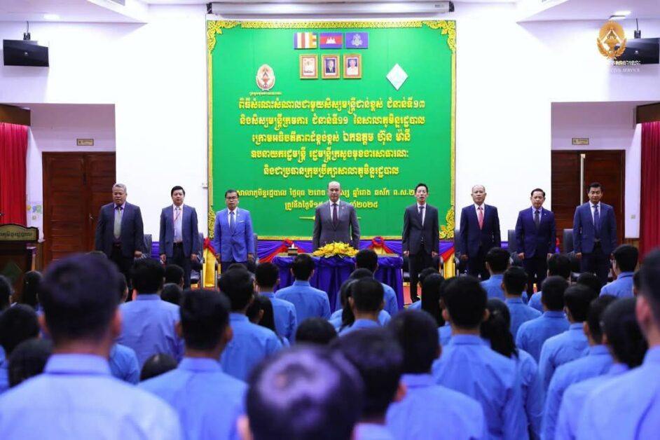 ឯកឧត្តមឧបនាយករដ្ឋមន្ត្រី ហ៊ុន ម៉ានី បានផ្តល់កិត្តិយសដ៏ខ្ពង់ខ្ពស់ជួបសំណេះសំណាលជាមួយសិស្សមន្រ្តីដែលទើបប្រឡងជាប់ និងត្រៀមខ្លួនចូលរៀននៅសាលាភូមិន្ទរដ្ឋបាល ចំនួន២៣០នាក់ (ស្រី ៦៥នាក់) នៅព្រឹកថ្ងៃទី ១៥ ខែមករា ឆ្នាំ២០២៥ ។