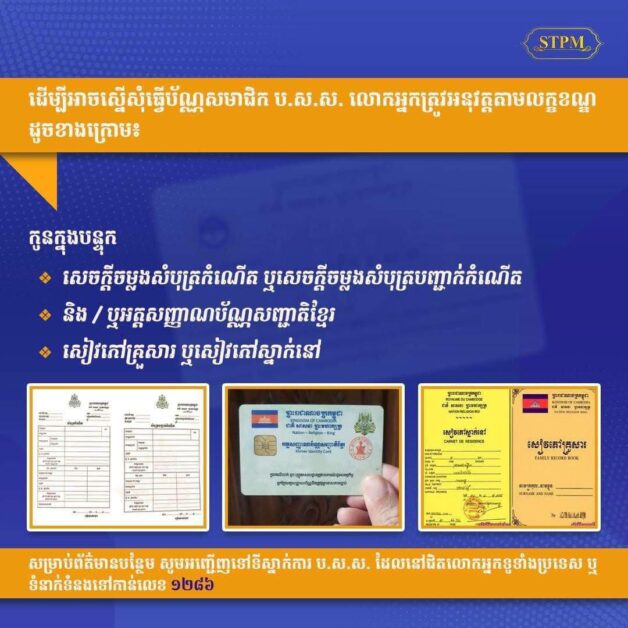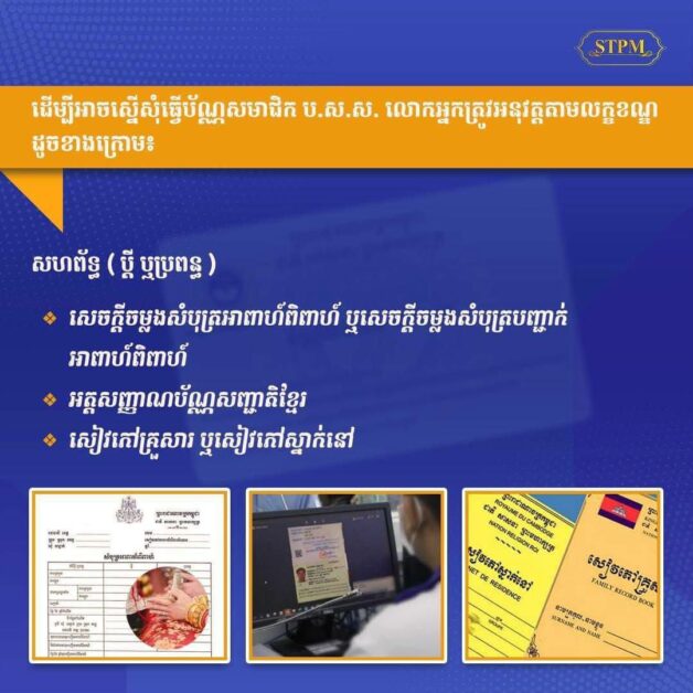 ដើម្បីអាចស្នើសុំធ្វើប័ណ្ណសមាជិក ប.ស.ស. ត្រូវអនុវត្តតាមលក្ខខណ្ឌដូចខាងក្រោម៖