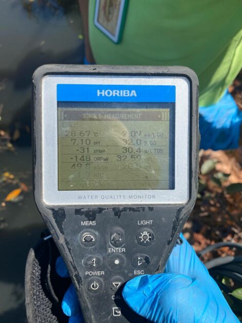 ក្នុងឱកាសនោះ ក្រុមការងារបានចុះធ្វើការត្រួតពិនិត្យដងព្រែកសង្កែចាប់ពីស្ពានថ្ម ផ្លូវជាតិលេខ៣ រហូតដល់មាត់សមុទ្រ និងបានសង្កតឃើញនៅចំណុចខ្លះទឹកព្រែកស្ថិតនៅមានលក្ខណៈក្រម៉ៅ ខ្លាញ់អណ្តែត និងក្លិនស្អុយនៅឡើយ ហើយ នៅចំណុចនៅក្បែរសមុទ្រ ទឹកព្រែកមានលក្ខណៈថ្លាធម្មតា។ តាមសេចក្តីរាយការណ៍ពីប្រជាពលរដ្ឋ ជាអ្នកនេសាទនៅតាមដងព្រែកនេះបានឱ្យដឹងថា កាលពីសប្តាហ៍មុននេះទឹក មានទឹកខ្មៅ និងក្លិនយ៉ាងខ្លាំងបានហូរតាមព្រែក ដែលភ្ជាប់ចូលទៅក្នុងសមុទ្រ ប៉ុន្តែរយៈពេល២ថ្ងៃមុនពេលក្រុមការងារចុះមក គឺពុំមានទឹកស្អុយចេញមកទៀតឡើយ។