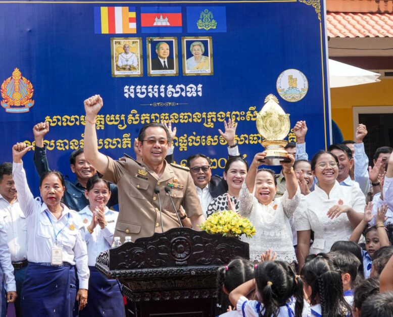 ពានរង្វាន់ជ័យលាភីអង្គភាពផ្តល់សេវាសាធារណៈគំរូក្នុងវិស័យអប់រំ និងវិស័យសុខាភិបាល ត្រូវបានរដ្ឋបាលខេត្តព្រះសីហនុរៀបចំពិធីដង្ហែរយ៉ាងឱឡារិក ក្រោមអធិបតីភាព ឯកឧត្តម សុខ គាង ប្រធានក្រុមការងារវិស័យអប់រំយុវ ជន និងកីឡា លោកជំទាវ សេង សុមេត្តា ប្រធានក្រុមការងារចុះមូលដ្ឋានក្រុងព្រះសីហនុ និងក្រុងកោះរ៉ុង ឯកឧត្តម វង្ស ផាណាត ប្រធានក្រុមប្រឹក្សាខេត្ត ឯកឧត្តម ម៉ាង ស៊ីណេត អភិបាល នៃគណ: អភិបាលខេត្តព្រះសីនុ ឯកមន្ត្រីរាជការ លោកគ្រូអ្នកគ្រូ សិស្សានុសិស្សយ៉ាងច្រើនកុះករដង្ហែរចូលសាលាមត្តេយ្យធនធានក្រុងព្រះសីហនុ នៅព្រឹកថ្ងៃចន្ទទី១០ ខែមីនា ឆ្នាំ២០២៥ ។