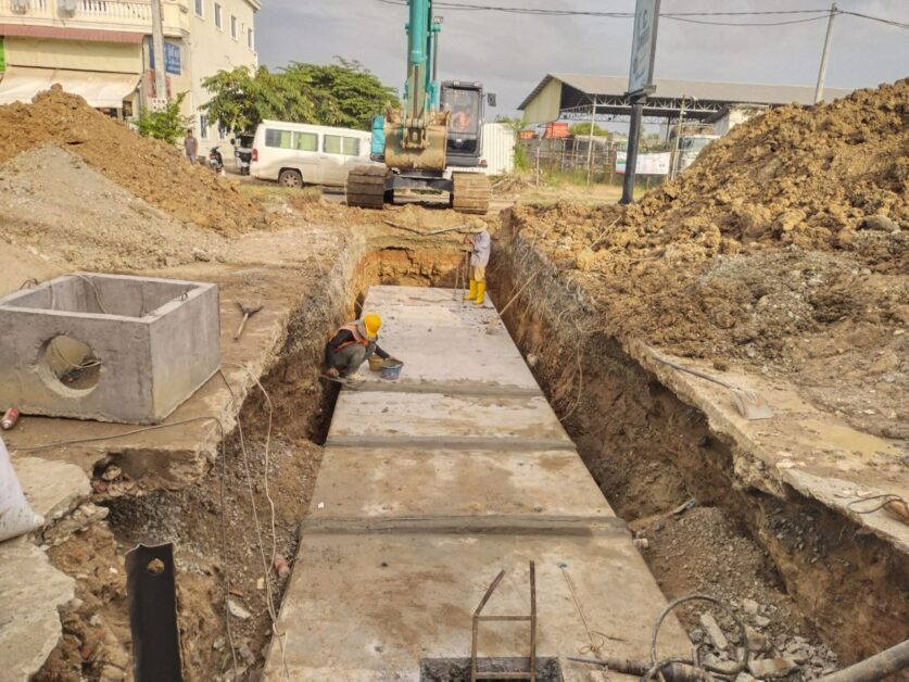 រដ្ឋបាលរាជធានីភ្នំពេញ មន្ទីរសាធារណការ និងដឹកជញ្ជូនរាជធានីភ្នំពេញ សម្រេចដាក់លូប្រអប់ដ៏ធំរំដោះទឹកភ្លៀងមានទំហំ២,៤ម៉ែត្រx២,៤ម៉ែត្រ កំណាត់មហាវិថីមិត្តភាព ភ្នំពេញ-ហានណូយ ប្រវែងសរុប៣០ម៉ែត្រ ជំម្រៅ៣ម៉ែត្រចាប់ផ្តើមដំណើរការ និងត្រៀមចាក់ផ្លូវបេតុងឆ្អឹង១២លី សង្កាត់ឃ្មួញ ខណ្ឌសែនសុខ