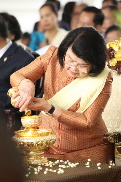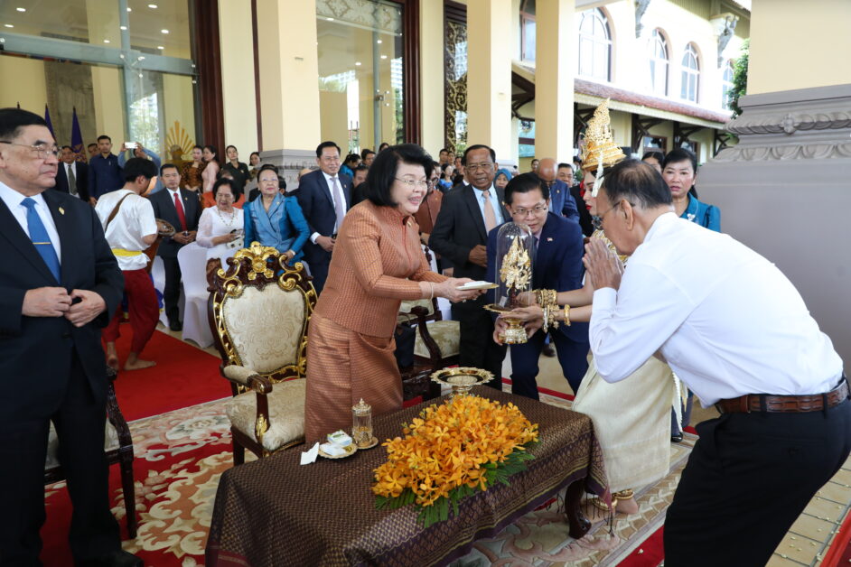 ជាកិច្ចបន្តសម្តេចមហារដ្ឋសភាធិការធិបតី ឃួន សុដារី ប្រធានរដ្ឋសភានៃព្រះរាជាណាចក្រកម្ពុជា បានធ្វើកិច្ចទៅតាមគន្លងប្រពៃណីព្រះពុទ្ធសាសនាដ៏ផូរផង់ ដោយមានការបូជាទៀនធូប ផ្កាភ្ញី គ្រឿងសក្ការៈនានា ថ្វាយព្រះរតនត្រៃ និងបានយាង និងនិមន្ត សម្តេចព្រះមហាសុមេធាធិបតី កិត្តិបណ្ឌិត អំ លឹមហេង សម្តេចព្រះសង្ឃនាយក គណៈមហានិកាយ នៃព្រះរាជាណាចក្រកម្ពុជា ព្រមទាំងព្រះមន្រ្តីសង្ឃ ដើម្បីសូត្រមន្ត ចម្រើនព្រះបរិត្ត ជម្រុះនូវឧបទ្រពចង្រៃក្នុងឆ្នាំចាស់ និងទទួលនូវពរជ័យសិរីមង្គលពីទេវតាឆ្នាំ្មថ្មី ។ ពិធីដ៏មង្គលនេះ បាន ប្រារព្ធធ្វើឡើងដោយមានការចូលរួមពីឯកឧត្តមកិត្តិសេដ្ឋាបណ្ឌិត ជាម យៀប អនុប្រធានទី១រដ្ឋសភា ឯកឧត្តម វង សូត្រអនុប្រធានទី២រដ្ឋសភា រួមនិងសមាជិក សមាជិកា គណៈកម្មាធិការអចិន្រ្តៃយ៍រដ្ឋសភា សមាជិក សមាជិការដ្ឋសភា ថ្នាក់ដឹកនាំ និងមន្រ្តីរាជការនៃអគ្គលេខាធិការដ្ឋាន យ៉ាងច្រើនកុះករ អធិកអធម ដោយសទ្ធាជ្រះថ្លាជាទីបំផុត។