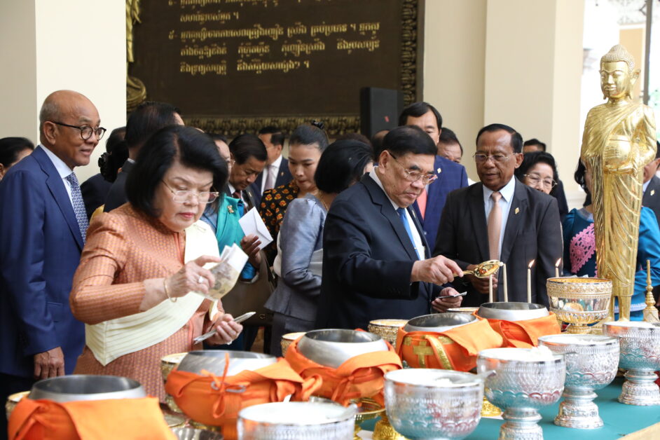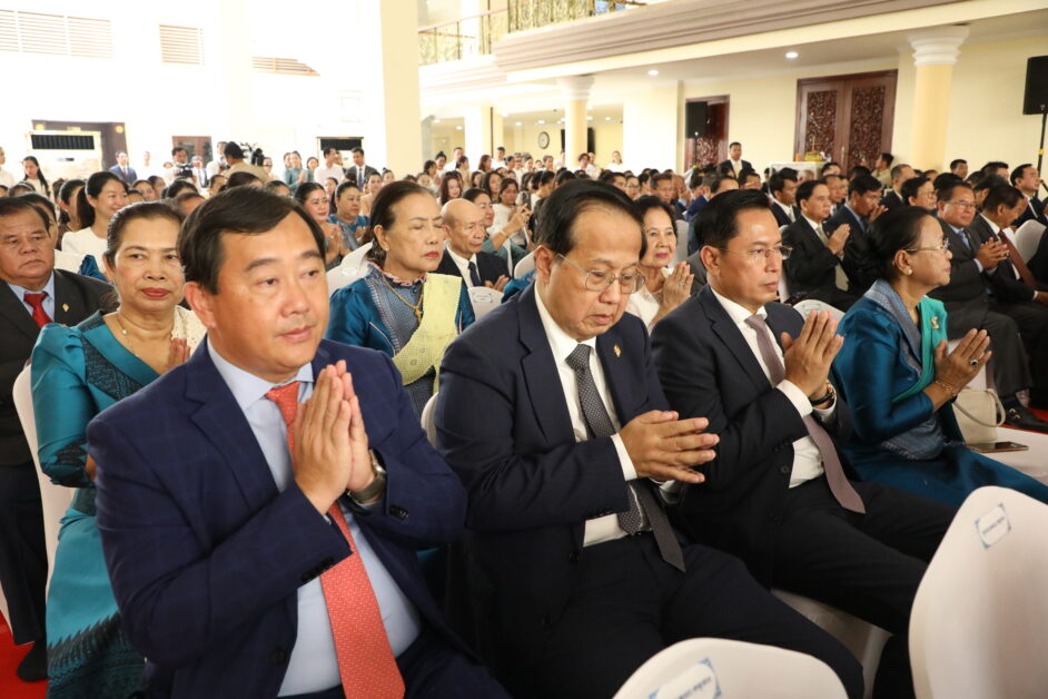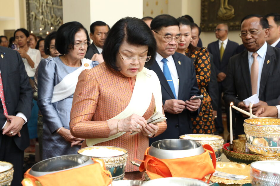 នៅក្នុងឱកាសនេះដែរ សម្តេចរដ្ឋសភាធិបតី ឃួន សុដារី និងឯកឧត្តមកិត្តិសេដ្ឋាបណ្ឌិត ជាម យៀប អនុប្រធានទី១រដ្ឋសភា ឯកឧត្តម វង សូត្រ អនុប្រធានទី២រដ្ឋសភា រួមនិងសមាជិក សមាជិកា គណៈកម្មាធិការអចិន្រ្តៃយ៍រដ្ឋសភា សមាជិក សមាជិការដ្ឋសភា ថ្នាក់ដឹកនាំ និងមន្រ្តីរាជការនៃអគ្គលេខាធិការដ្ឋាន បានអញ្ជើញរាប់បាត និងបានឧទ្ទិសកុសលផលបុណ្យជូនដល់វីរជន បុព្វការីជន អ្នកស្នេហាជាតិ អតីតថ្នាក់ដឹកនាំ សមាជិក សមាជិកា រដ្ឋសភា ដែលបានធ្វេីមរណកាលក្នុងបុព្វហេតុជាតិមាតុភូមិ រួមទាំងញាតិការទាំងអស់ ដែលបានចែក ឋានទៅកាន់ទីបរមលោកខាងមុខ សូមទទួលយកផល្លាអានិសង្ឃ ដែលកើតចេញអំពីបុណ្យក្នុងថ្ងៃនេះ ហើយបានទៅសោយសុខក្នុងឋានបរមលោកកុំបីអាក់ខានឡើយ។