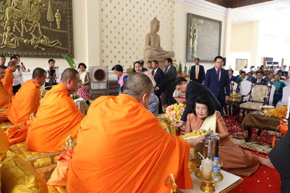 នៅចុងបញ្ចប់នៃកម្មវិធីសម្តេចរដ្ឋសភាធិបតី ឃួន សុដារី ប្រធានរដ្ឋសភា និង ឯកឧត្តមកិត្តិសេដ្ឋាបណ្ឌិត ជាម យៀប អនុប្រធានទី១រដ្ឋសភា ឯកឧត្តម វង សូត្រ អនុប្រធានទី២រដ្ឋសភា រួមនិងសមាជិក សមាជិកា គណៈកម្មាធិការអចិន្រ្តៃយ៍រដ្ឋសភា សមាជិក សមាជិការដ្ឋសភា ថ្នាក់ដឹកនាំ និងមន្រ្តីរាជការនៃអគ្គលេខាធិការដ្ឋានបានប្រគេននូវទេយ្យវត្ថុ និងបវារណាចតុបច្ច័យ ថ្វាយចំពោះសម្តេចព្រះមហាសុមេធាធិបតី កិត្តិបណ្ឌិត អំ លឹមហេង សម្តេចព្រះសង្ឃនាយក គណៈមហា និកាយ នៃព្រះរាជាណាចក្រកម្ពុជា សម្តេចព្រះសង្ឃព្រមទាំងព្រះមន្រ្តីសង្ឃគ្រប់អង្គជាកិច្ចបំពេញកុសល និងបួងសួងសុំសេច ក្តីសុខចម្រើន ជោគជ័យលើគ្រប់កិច្ចការងារ សូមកើតមានចំពោះមហាគ្រួសារនៃរដ្ឋសភាជាតិទាំងមូល ក៏ដូចជាប្រជាពលរដ្ឋខ្មែរគ្រប់ៗរូប ចាប់តាំងពីឆ្នាំថ្មីចូលមកដល់ និងជានិច្ចនិរន្តរ៍តរៀងទៅ៕