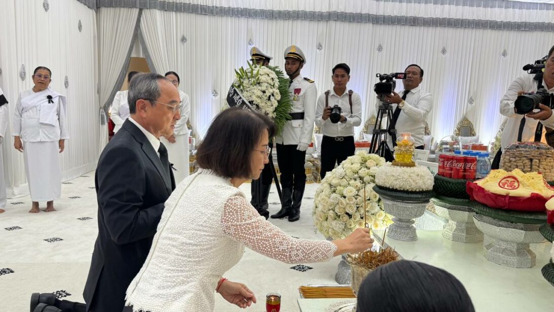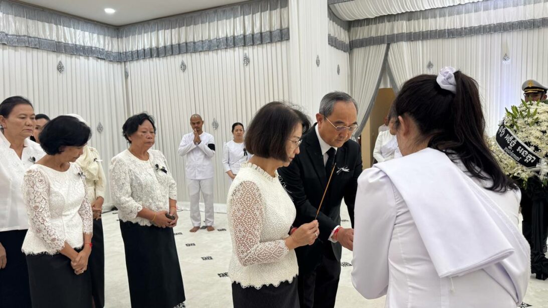 លោកជំទាវ កិត្តិបណ្ឌិត អ៉ឹង កន្ថាផាវី ដឹកនាំប្រតិភូក្រសួងកិច្ចការនារី អញ្ជើញគោរពវិញ្ញាណក្ខន្ធសព ឯកឧត្តម អ្នកឧកញ៉ា ឧត្តមមេត្រីវិសិដ្ឋ ហ៊ុន សាន