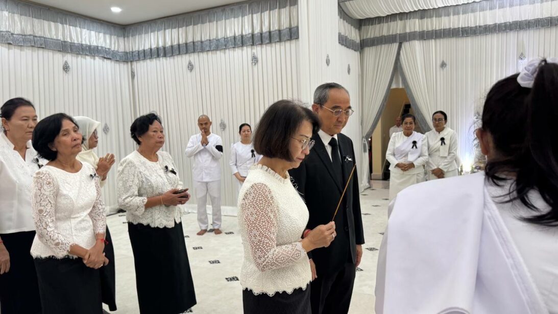 លោកជំទាវ កិត្តិបណ្ឌិត រដ្ឋមន្ត្រី និងគណៈប្រតិភូក្រសួងកិច្ចការនារី បានលើកហត្ថឧទ្ទិសបួងសួងដល់ដួងវិញ្ញាណក្ខន្ធរបស់ ឯកឧត្តមអ្នកឧកញ៉ា ឧត្តមមេត្រីវិសិដ្ឋ ហ៊ុន សាន សូម បានសោយសុខក្នុងសុគតិភពកុំបីឃ្លៀងឃ្លាតឡើយ៕