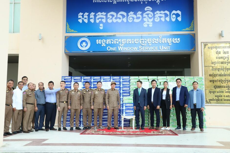 ភ្នំពេញ៖ ទឹកបរិសុទ្ធនិងទឹកក្រូចចំនួន៤០០០កេសត្រូវបានលោកអ្នកឧកញ៉ា លាង ម៉េង ប្រគល់ជូនរដ្ឋបាលរាជធានីភ្នំពេញ ដើម្បីអបអរក្នុងឱកាសព្រះរាជពិធីបុណ្យអុំទូកឆ្នាំ២០២៤នេះ។