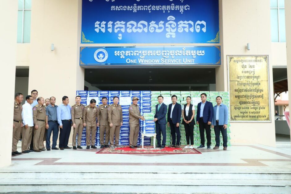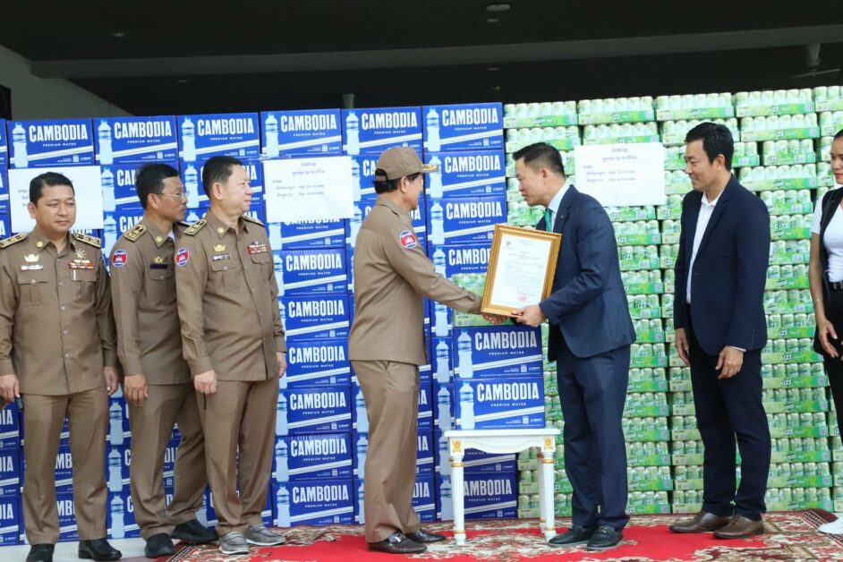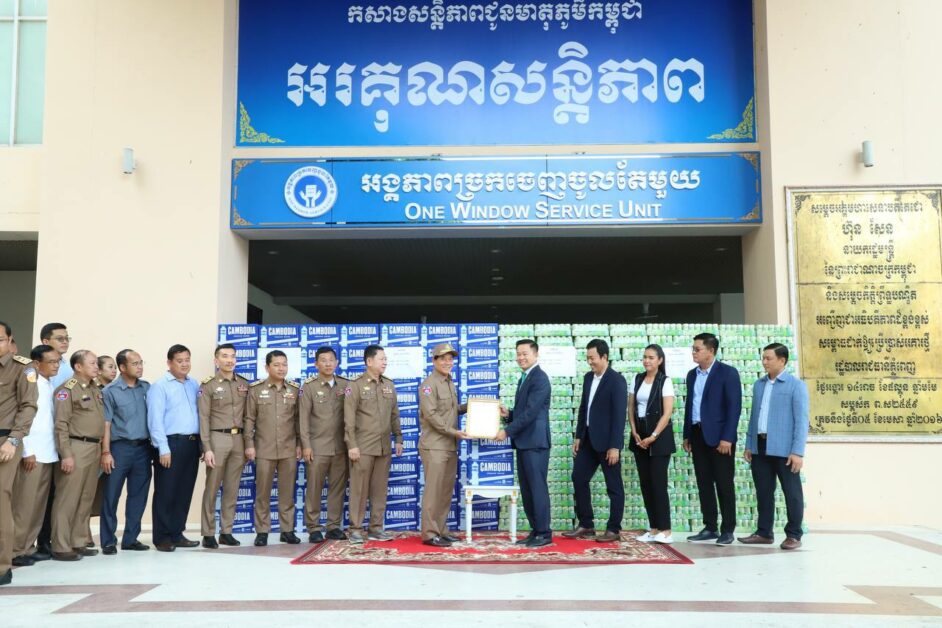 ភ្នំពេញ៖ ទឹកបរិសុទ្ធនិងទឹកក្រូចចំនួន៤០០០កេសត្រូវបានលោកអ្នកឧកញ៉ា លាង ម៉េង ប្រគល់ជូនរដ្ឋបាលរាជធានីភ្នំពេញ ដើម្បីអបអរក្នុងឱកាសព្រះរាជពិធីបុណ្យអុំទូកឆ្នាំ២០២៤នេះ។