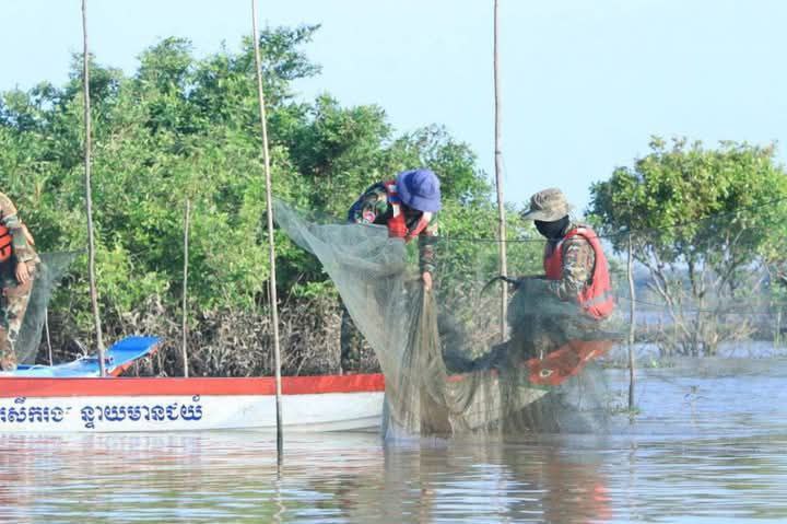 ខេត្តបន្ទាយមានជ័យ៖ ដើម្បីអនុវត្តតាមបទបញ្ជាររបស់ប្រមុខរាជរដ្ឋាភិបាល ក្នុងការបង្ការបង្រ្កាបទប់ស្កាត់ឲ្យខាងតែបាននូវរាល់បទល្មើសនេសាទផ្សេងៗ ក្នុងតំបន់បឹងទន្លេសាប ឲ្យកាន់តែមានប្រសិទ្ធភាពនោះ លោកឧត្តមសេនីយ៍ទោ សេង ធារិន មេបញ្ជាការរង នាយសេនាធិការ យោភូមិភាគទី៥ និងជាប្រធានគណៈបញ្ជាការដឹកនាំបង្រ្កាបបទល្មើសនេសាទបឹងទន្លេសាប បានដឹកនាំកងកម្លាំងយោធាចំនួន៨០០នាក់ ក្នុងនោះ ក៏មានការចូលរួមពីកងពលតូចថ្មើរជើងលេខ៥១ សហការចុះធ្វើការបង្ក្រាបរាល់បទល្មើសនេសាទ ខុសច្បាប់នានាក្នុងតំបន់បឹងទន្លេសាប ត្រង់ចំណុចភូមិសាស្រ្តខេត្តពោធិ៍សាត់ បាត់ដំបង និងខេត្តសៀមរាប ដើម្បីបង្ការទប់ស្កាត់រាល់បទល្មើសនេសាទ និងបានរក្សានូវពូជមច្ឆជាតិឲ្យបាននៅគង់វង្ស។