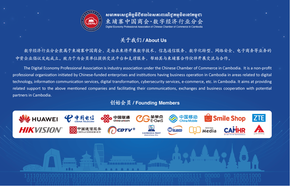 នៅថ្ងៃទី 4 ខែវិច្ឆិកា ឆ្នាំ 2024 វេទិកាកិច្ចសហប្រតិបត្តិការសេដ្ឋកិច្ចឌីជីថលកម្ពុជា-ចិន និងពិធីសម្ពោធសមាគមវិជ្ជាជីវៈសេដ្ឋកិច្ចឌីជីថលនៃសភាពាណិជ្ជកម្មចិននៅកម្ពុជានៅទីក្រុងភ្នំពេញ នៃប្រទេសកម្ពុជា។ ព្រឹត្តិការណ៍នេះបានកំណត់សម្គាល់ថ្មី ចំណុចសំខាន់ៗក្នុងកិច្ចសហប្រតិបត្តិការសេដ្ឋកិច្ចឌីជីថលរវាងប្រទេសទាំងពីរ។