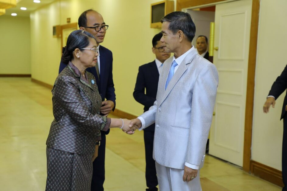 សម្ដេចកិត្តិសង្គហបណ្ឌិត ម៉ែន សំអន ប្រធានក្រុមប្រឹក្សាជាតិរណសិរ្សសាមគ្គីអភិវឌ្ឍន៍ មាតុភូមិ កម្ពុជា និង ឯកឧត្តមបណ្ឌិត ស៊ិនឡៈវង់ ឃុតផៃធូត ប្រធានគណៈ កម្មាធិការមជ្ឈិមរណសិរ្ស អភិវឌ្ឍន៍ជាតិឡាវ បានអញ្ជើញជាអធិបតី ពិធីចុះអនុស្សរណ:យោគយល់គ្នា ស្តីពីកិច្ច សហប្រតិបត្តិការ ឆ្នាំ២០២៤-២០២៨ រវាងរណសិរ្ស សាមគ្គី អភិវឌ្ឍន៍មាតុភូមិកម្ពុជា និង រណសិរ្សអភិវឌ្ឍន៍ជាតិឡាវ នៅសណ្ឋាគារសុខាភ្នំពេញ នារសៀល ថ្ងៃព្រហស្បតិ៍ ១៥កើត ខែអស្សុជ ឆ្នាំរោង ឆស័ក ព.ស. ២៥៦៨ ត្រូវនឹង ថ្ងៃទី១៧ ខែតុលា ឆ្នាំ២០២៤។ថ្លែងក្នុងឱកាសនោះ សម្តេចកិត្តិសង្គហបណ្ឌិត ក៏បាន លើកឡើងអំពីទំនាក់ទំនងការទូតកម្ពុជា-ឡាវ បានចាប់ផ្តើមពីថ្ងៃទី ១៥ ខែមិថុនា ឆ្នាំ១៩៥៦ ជាចំណងមិត្តភាពក្នុងភាព ជាអ្នកជិត ខាងល្អ និងមិត្តភាពជាប្រពៃណី ដែលទំនាក់ទំនងនេះត្រូវបានពង្រឹង និងពង្រីករហូតត្រូវ បានលើកកម្ពស់ទៅជា “ភាពជាដៃគូយុទ្ធសាស្រ្តគ្រប់ជ្រុងជ្រោយ និងយូរអង្វែង” នៅក្នុងឆ្នាំ ២០១៩។ ជាការឆ្លើយតប ឯកឧត្តមបណ្ឌិត ស៊ិនឡៈវង់ ឃុតផៃធូត ក៏បានចាប់អារម្មណ៍ចំពោះការ អភិវឌ្ឍន៍របស់កម្ពុជាយ៉ាងឆាប់រហ័ស ក្រោមការដឹកនាំប្រកបដោយកិត្តិបណ្ឌិតរបស់ សម្តេច អគ្គមហាសេនាបតីតេជោ ហ៊ុន សែន ប្រធានគណបក្សប្រជាជនកម្ពុជា និងការដឹកនាំដ៏វៀងវៃ របស់ សម្តេមហាបវរធិបតី ហ៊ុន ម៉ាណែត នាយករដ្ឋមន្ត្រីកម្ពុជា។ ទន្ទឹមនឹងនោះផងដែរគណ:ប្រតិភូឡាវក៏សូមសិក្សារៀនសូត្រ និង ចែករំលែកបទពិសោធន៍ អំពីការពង្រឹង ឃុំ សង្កាត់ ពីកម្ពុជា។ឯកឧត្តមបណ្ឌិត ក៏បានថ្លែង អំណរគុណ ភាគីកម្ពុជាដែលបានទទួលស្វាគមន៍យ៉ាងកក់ក្តៅចំពោះប្រតិភូឡាវ ដែលបានមក បំពេញទស្សនកិច្ចជាផ្លូវការនៅព្រះរាជាណាចក្រកម្ពុជានាពេលនេះ។នៅក្នុងពិធីចុះអនុស្សរណ:យោគយល់គ្នា ស្តីពីកិច្ចសហប្រតិបត្តិការ ឆ្នាំ២០២៤-២០២៨ រវាងរណសិរ្សសាមគ្គី អភិវឌ្ឍន៍មាតុភូមិកម្ពុជា និងរណសិរ្សអភិវឌ្ឍន៍ជាតិឡាវ បានឯកភាព ៨ចំណុចលើ អនុស្សរណ: យោគយល់គ្នា ដើម្បីបន្តរិតចំណងសាមគ្គីភាព មិត្តភាព និងកិច្ចសហប្រតិបត្តិការយូរអង្វែង៕