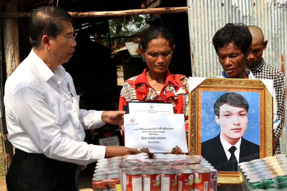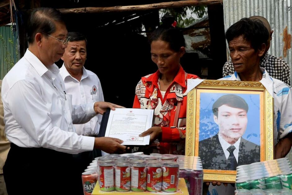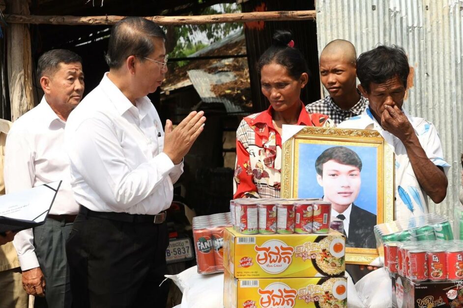 សម្តេចកិត្តិព្រឹទ្ធបណ្ឌិត ប៊ុន រ៉ានី ហ៊ុនសែន ចាត់តំណាងចូលរួមរំលែកទុក្ខជាមួយគ្រួសារសពពលករខ្មែរ ឈ្មោះ មាស សាវ៉ាង ដែលទទួលមរណភាព ដោយការរញ្ជួយដីក្នុងប្រទេសថៃ